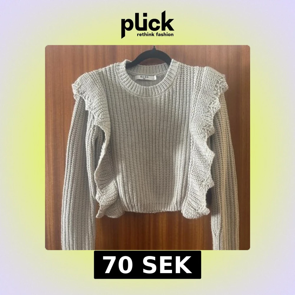 Supersnygg grå stickad tröja från NA-KD i storlek S. Tröjan har volangdetaljer längs axlarna och ärmarna, vilket ger en trendig och cool look. Modellen är lite croppad och har rund hals samt långa ärmar. Perfekt för att lyfta din outfit!