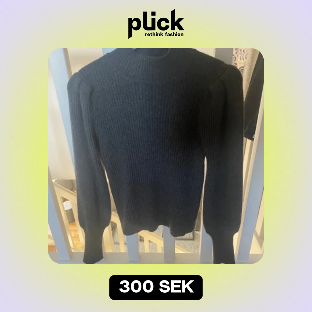 Stickad tröja med lite puffärmar, fin detalj med hög mudd vid ärmarna! Använd 1 gång. Som ny!