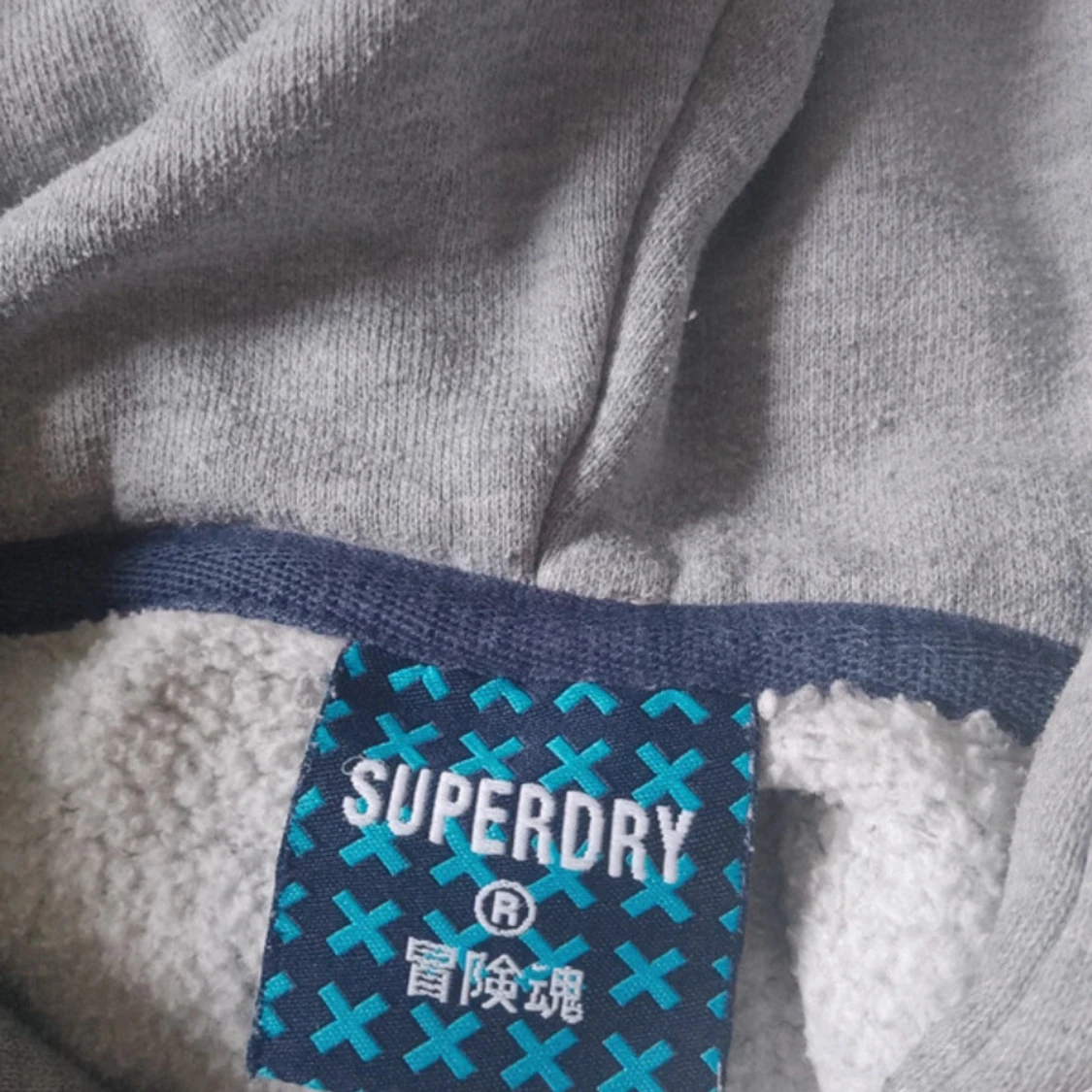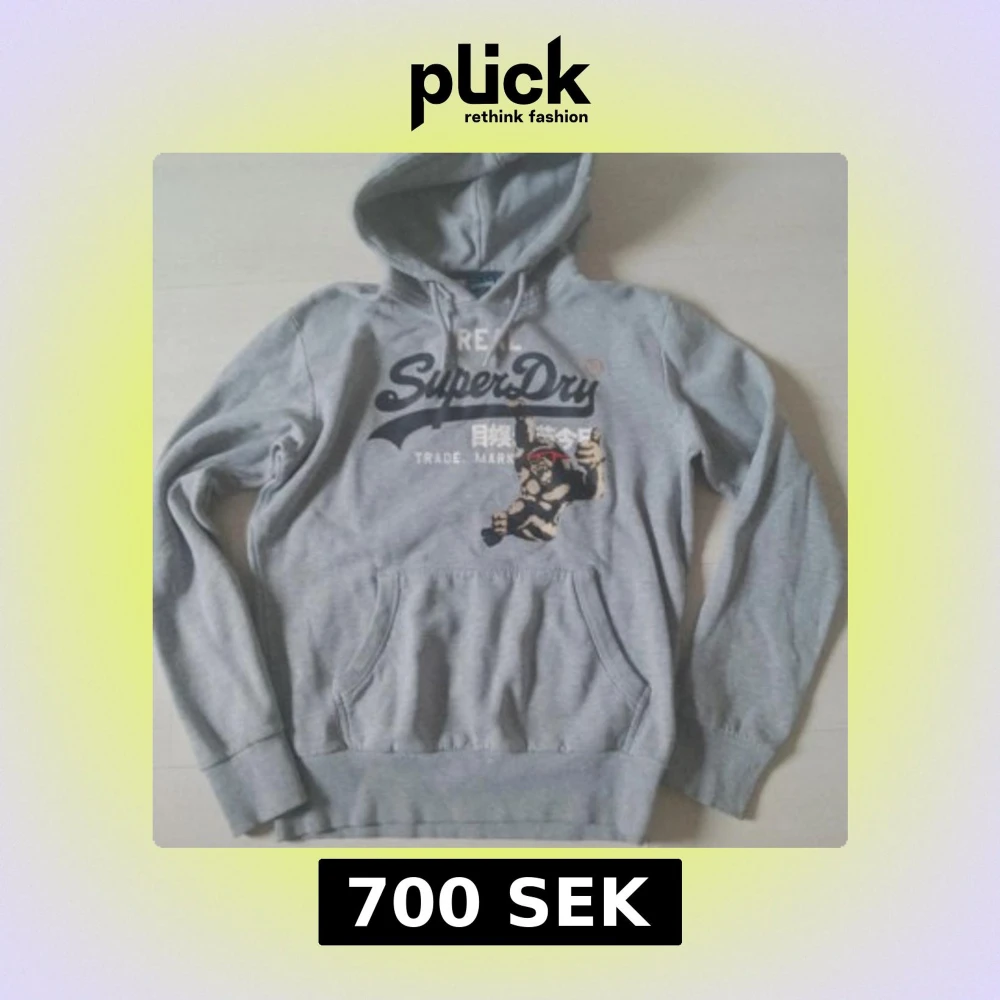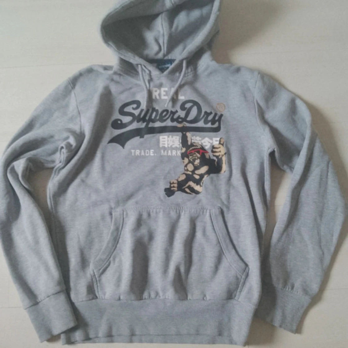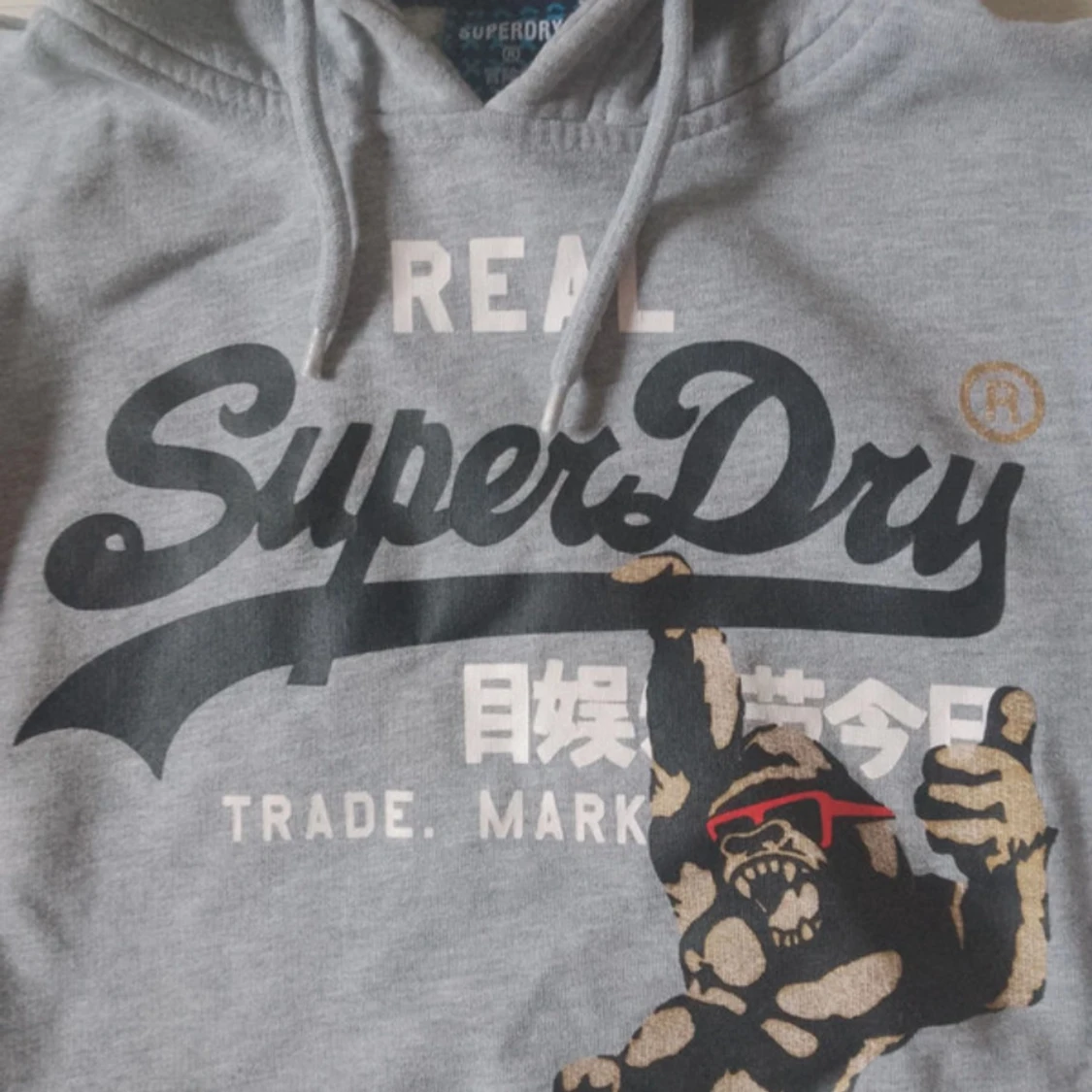 Snygg grå hoodie från Superdry med stort tryck på bröstet och cool gorilla med röda solglasögon. Tröjan har huva med snörning och en stor magficka. Perfekt för dig som gillar streetstyle och vill sticka ut lite extra.