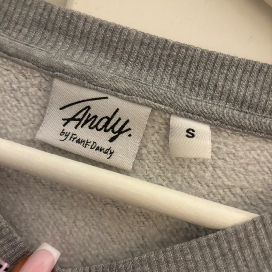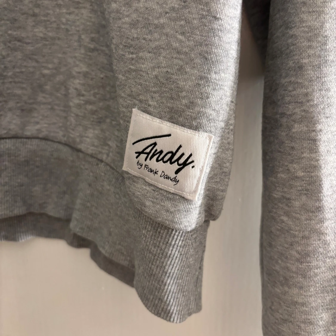 En stilren grå sweatshirt från Andy by Frank Dandy i storlek S. Tröjan har rund hals, ribbade muddar och en snygg patch nertill. Perfekt för en chill och avslappnad look.🤗