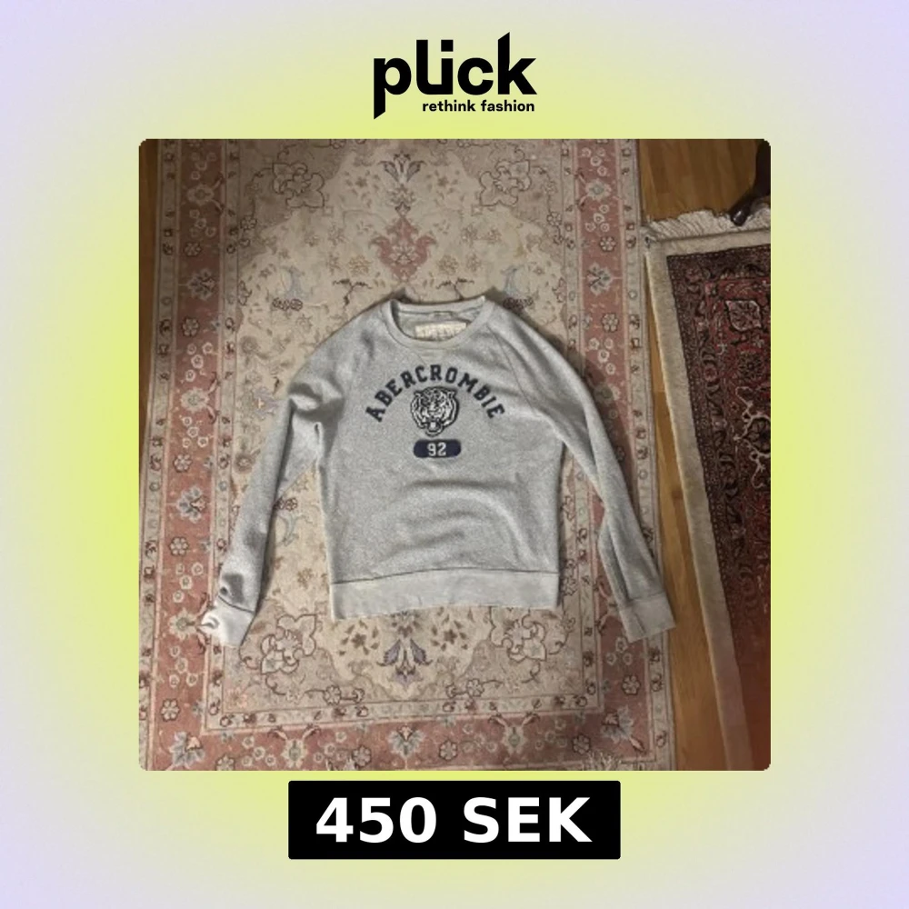 Grå sweatshirt från Abercrombie & Fitch i storlek S. Tröjan har ett tryck med tiger och texten 'Abercrombie 92' i marinblått framtill. Rund hals, ribbade muddar och långärmad. Materialet är mjuk bomull och polyester, perfekt för chill dagar.