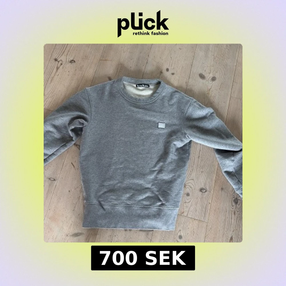 Grå crewneck sweatshirt från Acne Studios med klassisk rund hals och det ikoniska broderade face-loggan på bröstet. Tröjan är i mjuk bomull och har långa ärmar samt ribbade muddar vid ärmslut och nederkant. Perfekt basic med stilren design. Passar dig som är runt 165-170