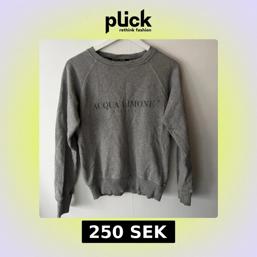 Säljer en grå sweatshirt från Acqua Limone med klassisk logga tryckt på bröstet och citrongul broderad detalj i nacken. Tröjan har rund hals, ribbade muddar och är tillverkad i mjuk bomullsmix. Perfekt för chill dagar och enkel att matcha med jeans eller joggers.
