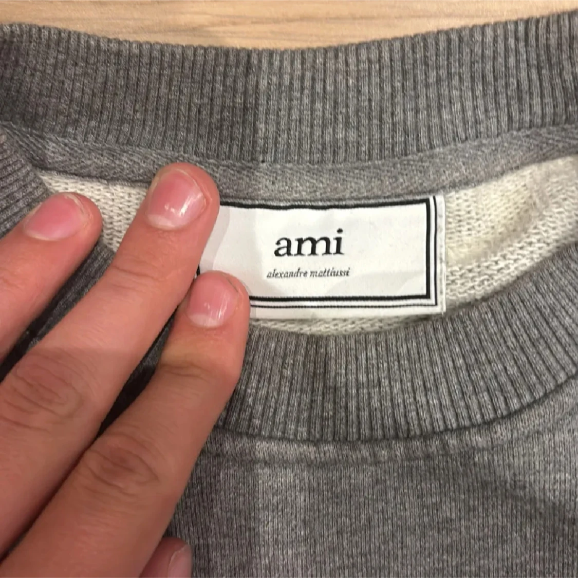 Snygg grå sweatshirt från Ami Paris med diskret broderad logga på bröstet. Tröjan har rund hals, ribbade muddar och är tillverkad i mjuk bomull. Perfekt för dig som gillar stilrena och klassiska plagg med en modern touch. Storlek XS passar dig som är ca 175-180cm lång🫵🏼 Hör av dig för minsta lilla fundering!❤️🫵🏼
