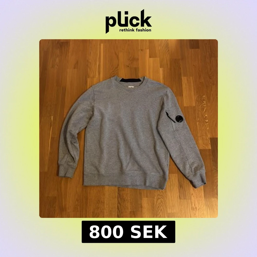 Snygg grå sweatshirt från C.P. Company med klassisk rund hals och lång ärm. Tröjan har en ikonisk svart linsdetalj på ena ärmen och ribbade muddar. Perfekt för en clean och stilren look, passar till jeans eller joggers.