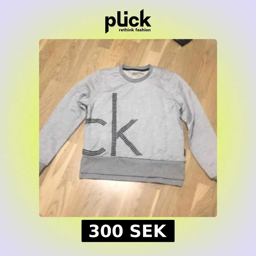 Säljer en stilren grå sweatshirt från Calvin Klein Jeans med det ikoniska CK-logotypen i svart på framsidan. Tröjan har långa ärmar och ribbade muddar vid ärmslut och nederkant. Perfekt för en avslappnad look.