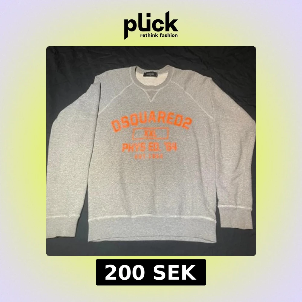 Grå sweatshirt från Dsquared2 med orange tryck, storlek Small. Perfekt för en avslappnad och sportig stil.