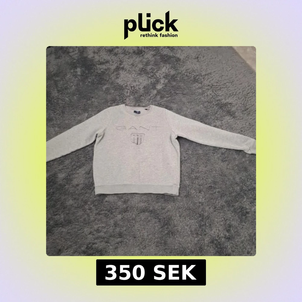 Säljer en stilren grå sweatshirt från GANT med broderad logga och sköld på bröstet. Tröjan har rund halsringning och långa ärmar. Perfekt för en avslappnad och klassisk look.