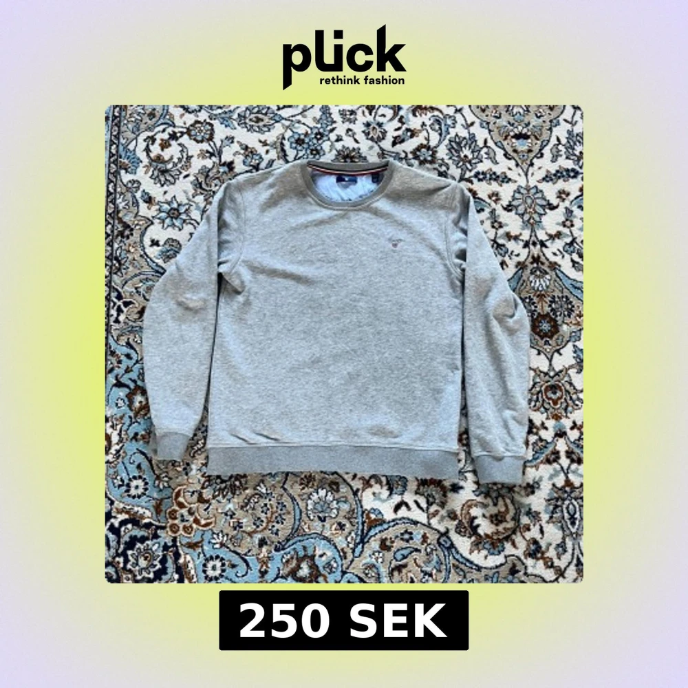 Säljer en stilren grå sweatshirt från GANT med rund halsringning och diskret logga på bröstet. Tröjan har ribbade muddar vid ärmslut och nederkant, vilket ger en bekväm passform. Perfekt för en avslappnad stil. Använd ca tio gånger storlek 15 år / 170 cm köpt för 1000 kr. Säljer för 250 KR