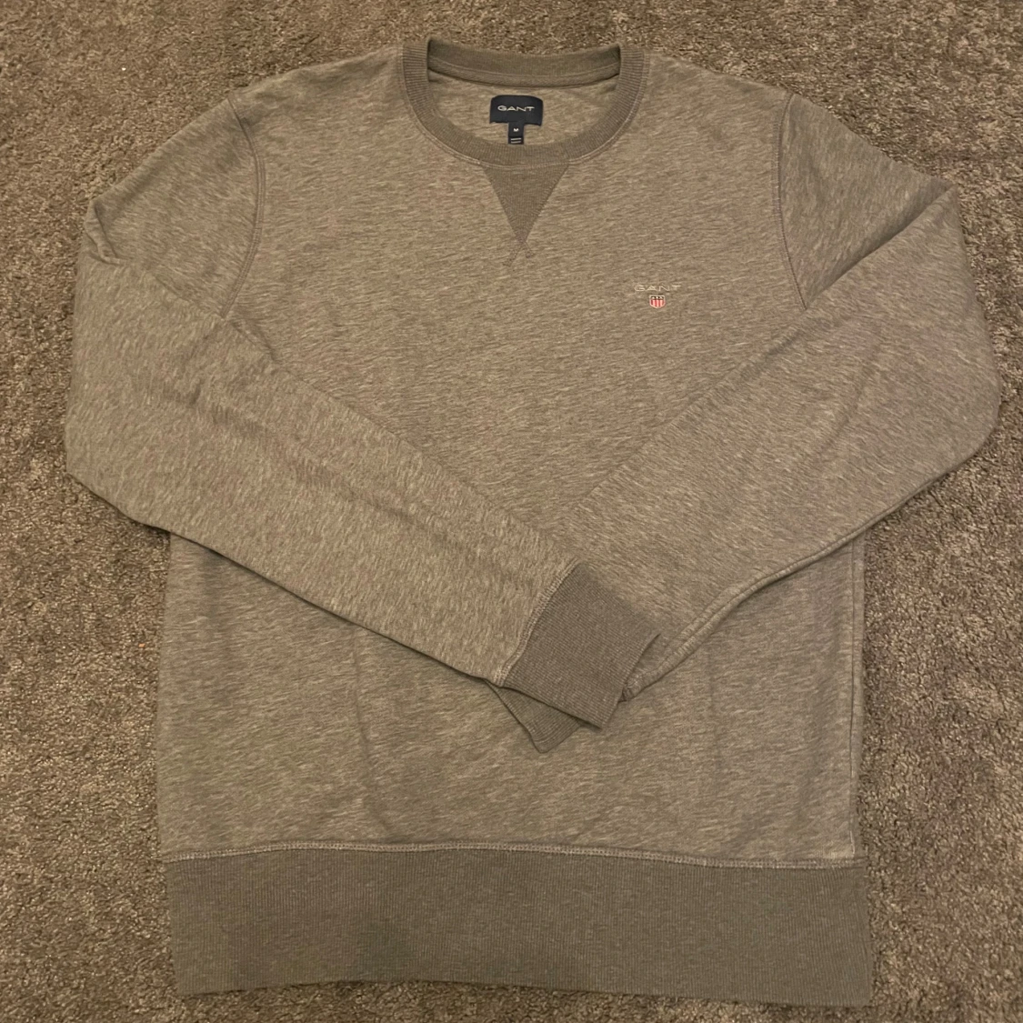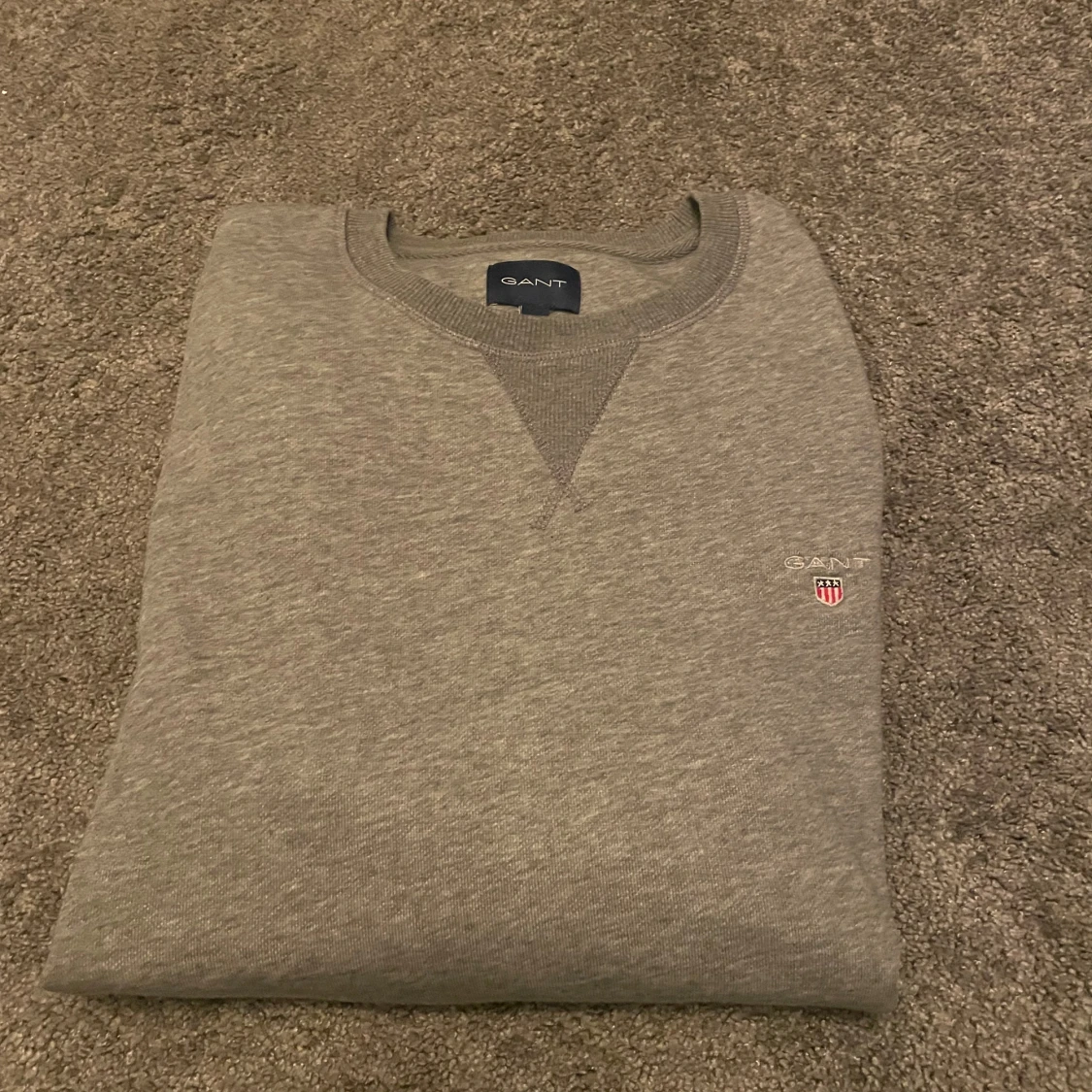 Säljer en stilren grå sweatshirt från GANT med broderad logga på bröstet. Tröjan har rund halsringning, ribbade muddar och är tillverkad i mjuk bomullsmix. Hör gärna av er vid frågor eller funderingar