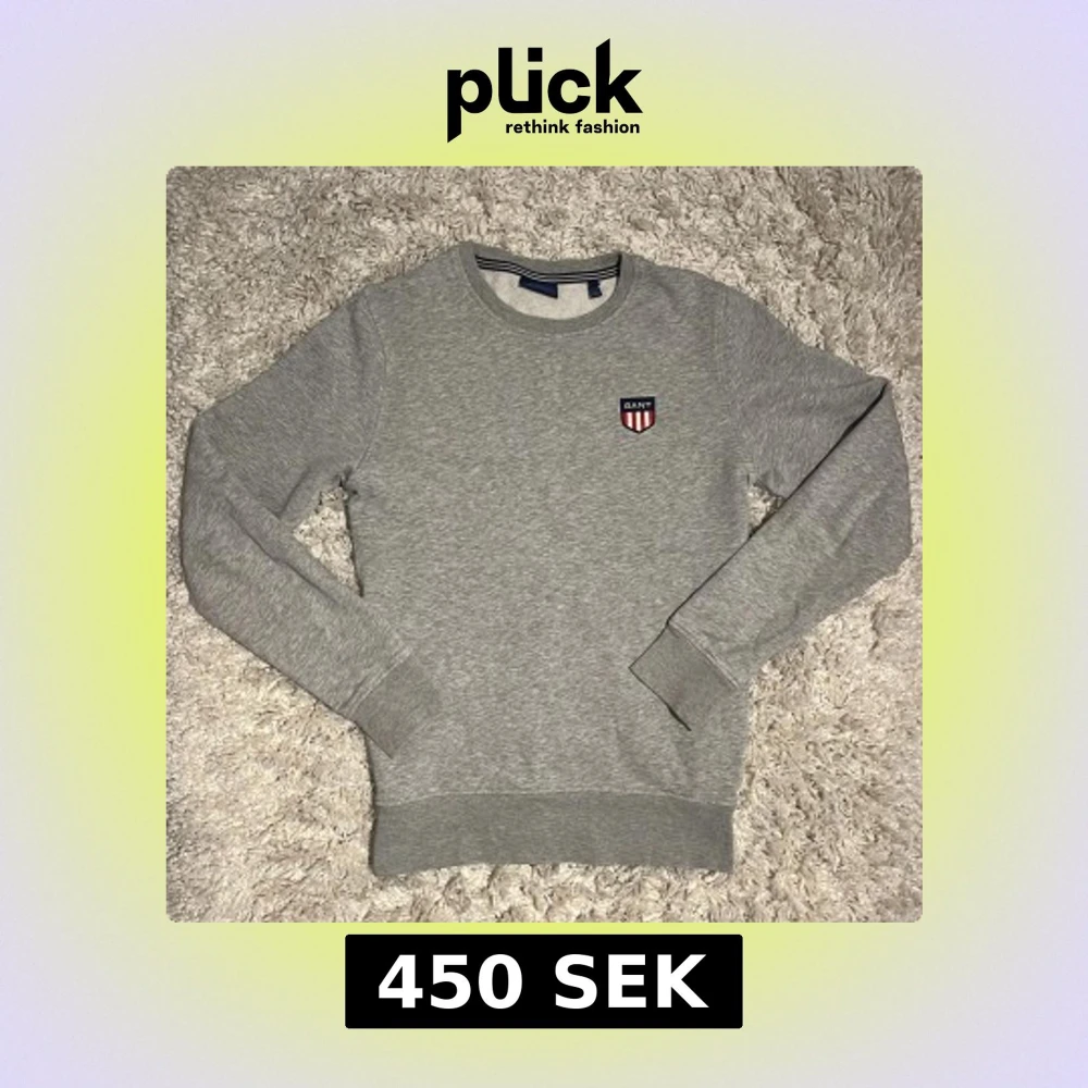 Klassisk grå sweatshirt från GANT i bomull med rund hals och broderad GANT-logo på bröstet. Tröjan är i nytt skick och har storlek S.