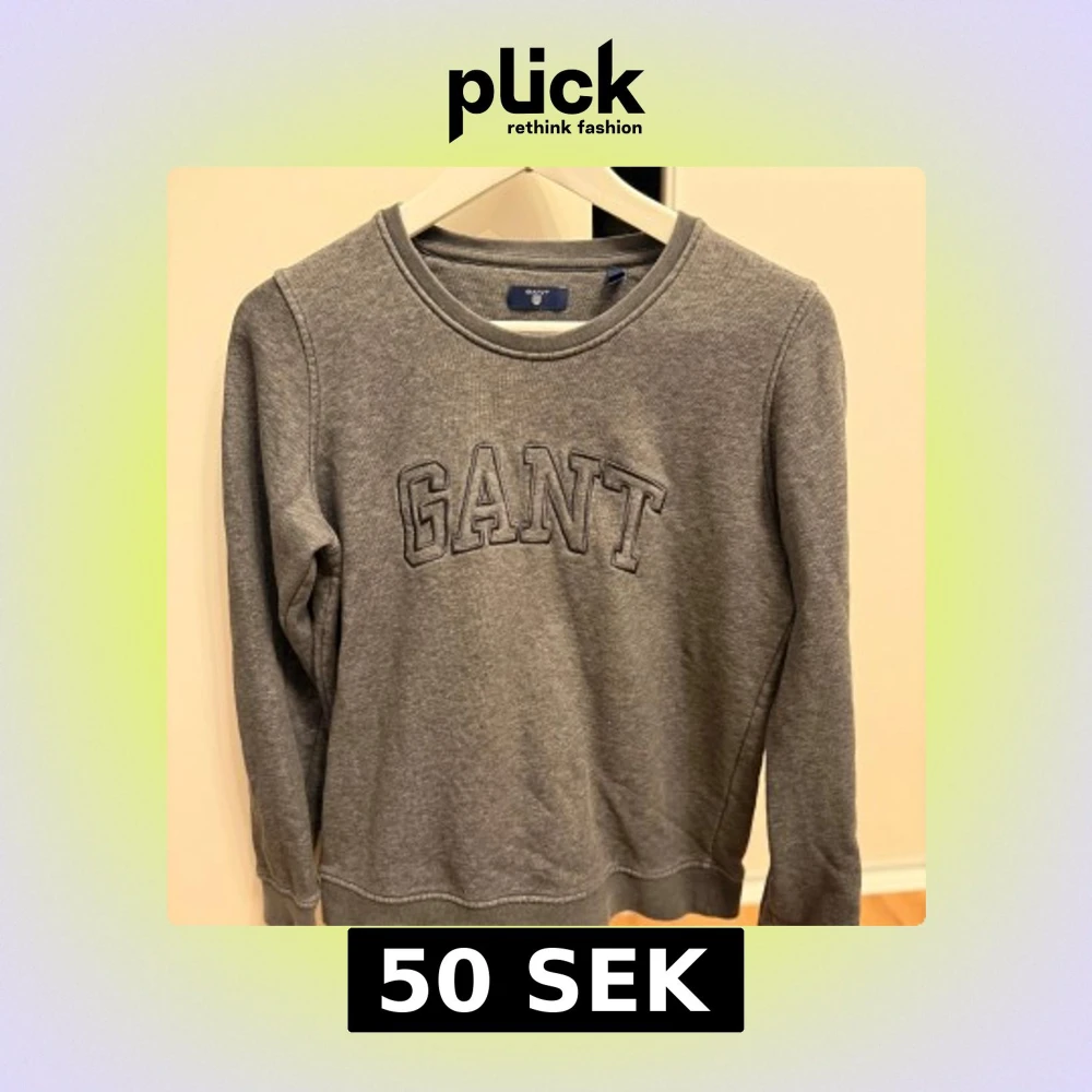 Snygg grå sweatshirt från GANT med broderad logga framtill. Tröjan har rund halsringning och långa ärmar. Storlek S, tror den passar lika bra på killar som tjejer.