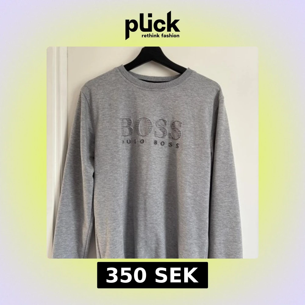 Säljer en stilren grå sweatshirt från Hugo Boss med broderad logga på bröstet. Tröjan har rund halsringning och långa ärmar. Perfekt för en avslappnad och snygg look.