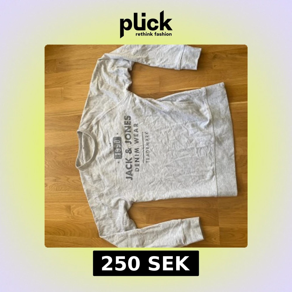 Säljer en ljusgrå sweatshirt från Jack & Jones med tryck på bröstet. Tröjan har rund halsringning och långa ärmar. Perfekt för en avslappnad stil och enkel att matcha med jeans eller joggers.