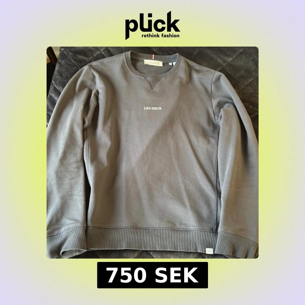 Säljer en stilren grå sweatshirt från Les Deux med broderad logga på bröstet. Tröjan har rund halsringning, ribbade muddar och är långärmad. Perfekt för en clean och avslappnad look.