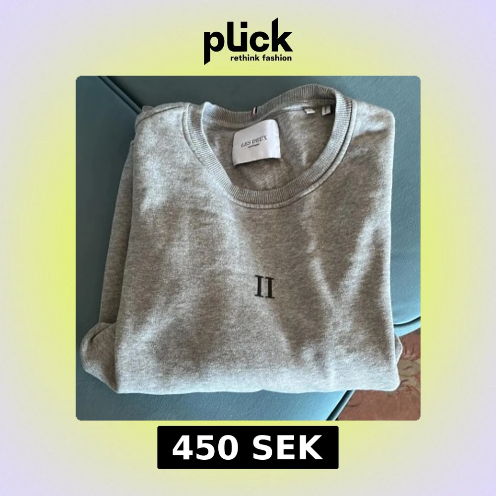Säljer en stilren grå sweatshirt från Les Deux med en enkel svart logga på bröstet. Tröjan har långa ärmar och en rund halsringning. Perfekt för en avslappnad look.