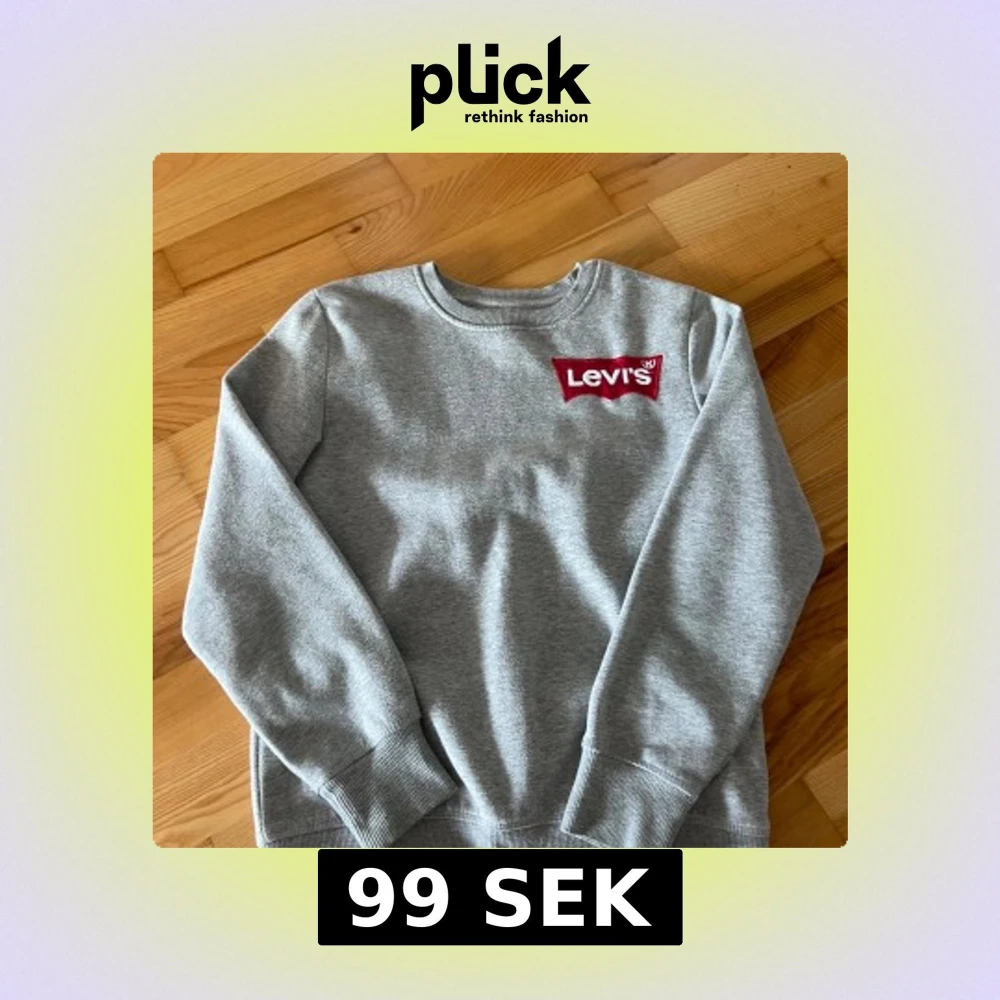 Säljer en klassisk grå sweatshirt från Levi's med deras ikoniska röda logga på bröstet. Tröjan har långa ärmar och ribbade muddar vid ärmslut och nederkant. Perfekt för en avslappnad stil.