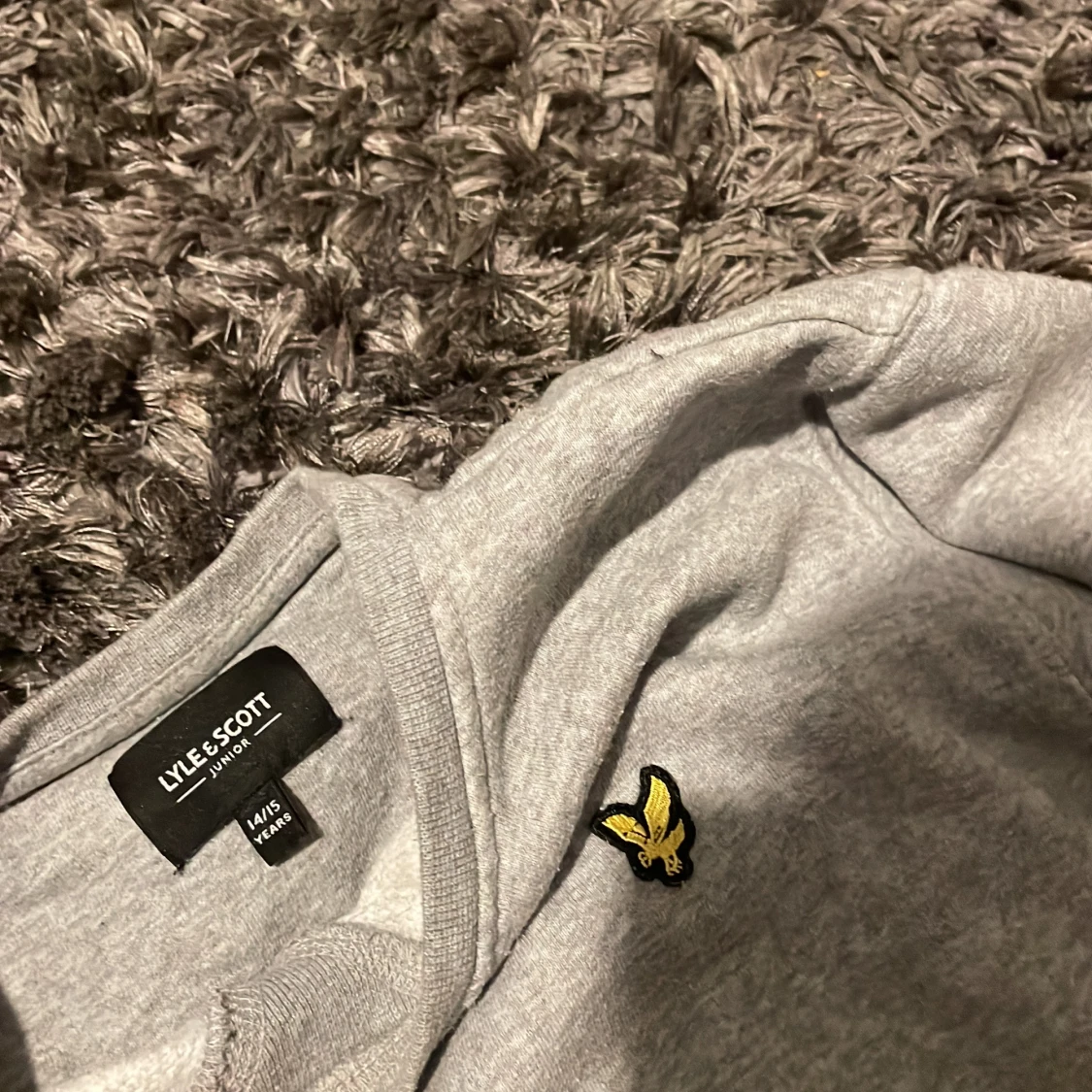 Säljer en stilren grå sweatshirt från Lyle & Scott med deras ikoniska gula logga på bröstet. Tröjan har långa ärmar och en rund halsringning. Perfekt för en avslappnad look.