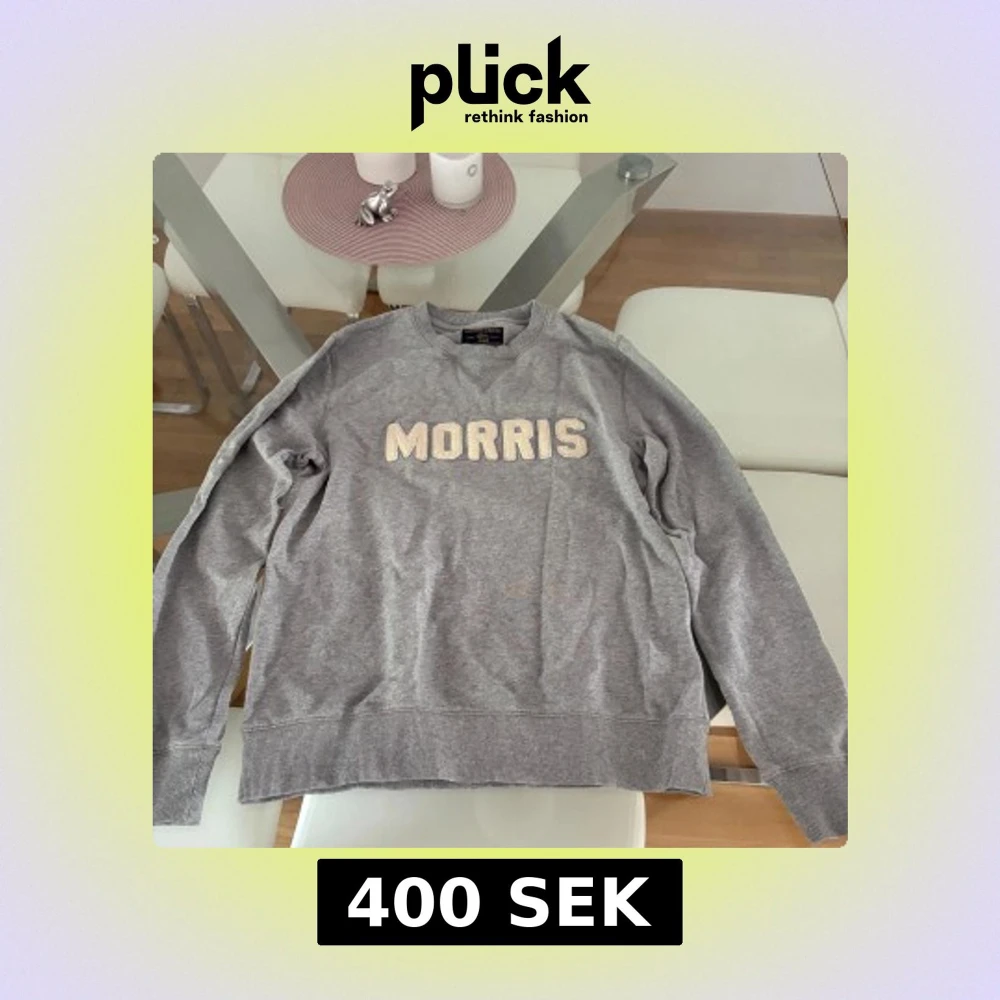 Säljer en grå sweatshirt från Morris med broderad logga i vitt framtill. Tröjan har rund halsringning, långa ärmar och ribbade muddar vid ärmslut och nederkant. Perfekt för en chill och stilren look. Säljer pga för liten. Kommer att tvättas innan leverans.