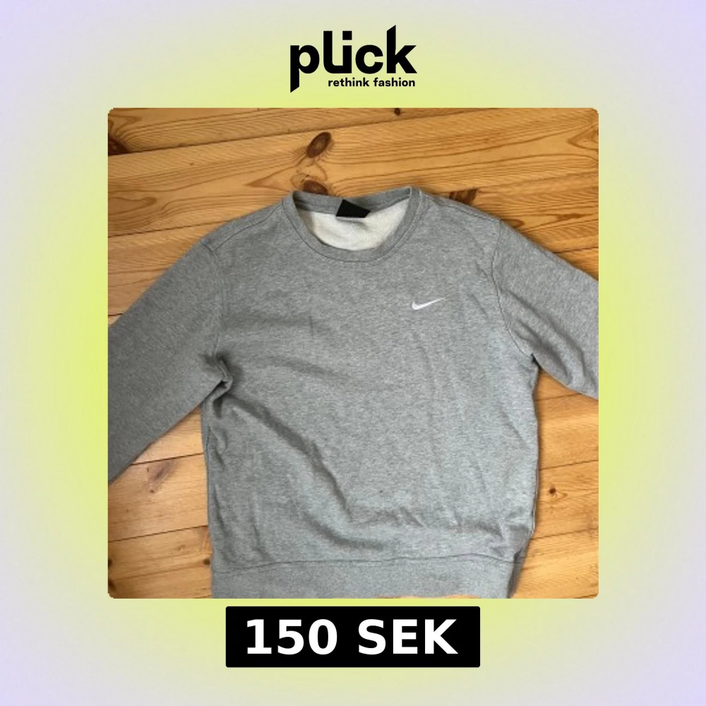 Säljer en klassisk grå sweatshirt från Nike med rund hals och det ikoniska swoosh-loggan på bröstet. Jätteskön!
