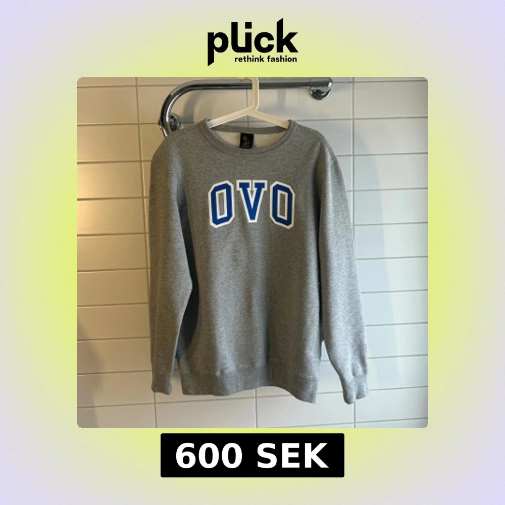 Säljer en grå sweatshirt från OVO med blå och vit text på framsidan. Tröjan har långa ärmar och en liten uggla broderad på ärmen. Perfekt för en avslappnad stil. På tröjan står de att strl är extra small men skulle säga att den sitter mer som en Vanlig small.