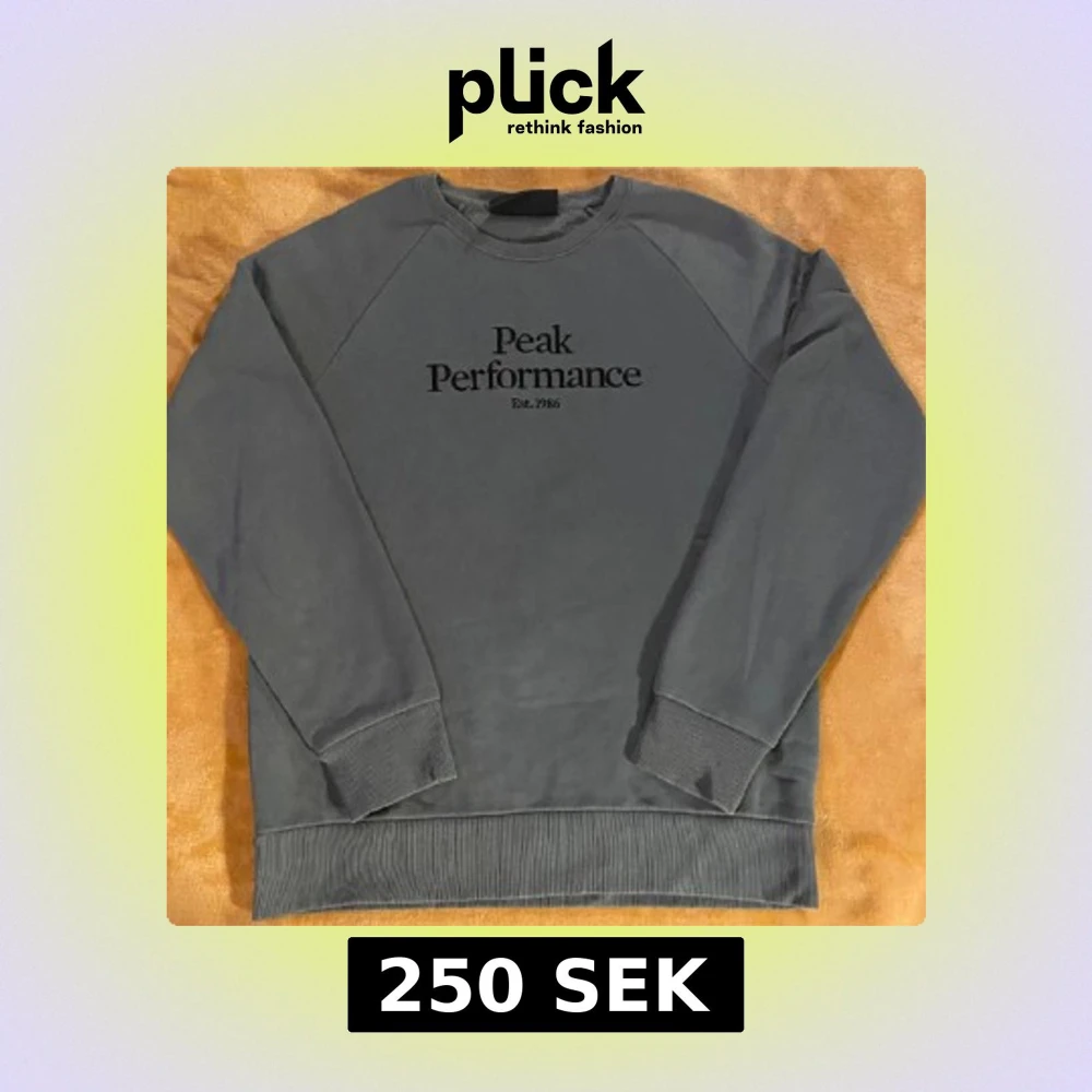 Snygg grå sweatshirt från Peak Performance med tryck framtill. Tröjan har långa ärmar och ribbade muddar vid ärmslut och nederkant. Perfekt för en avslappnad stil.. obs dåligt ljus är grön irl