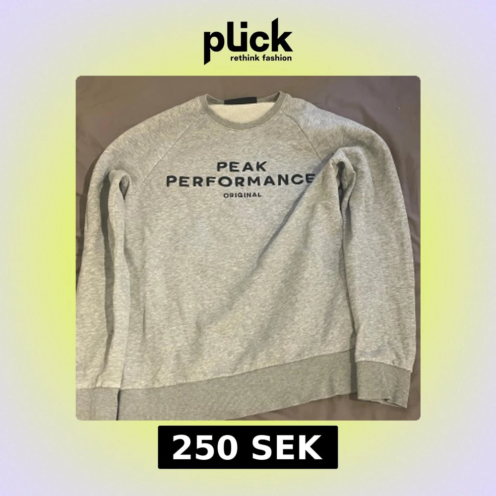 Säljer en stilren grå sweatshirt från Peak Performance med svart logga framtill. Tröjan har rund hals, ribbade muddar och är tillverkad i mjuk bomullsmix. Perfekt för en chill och sportig look.