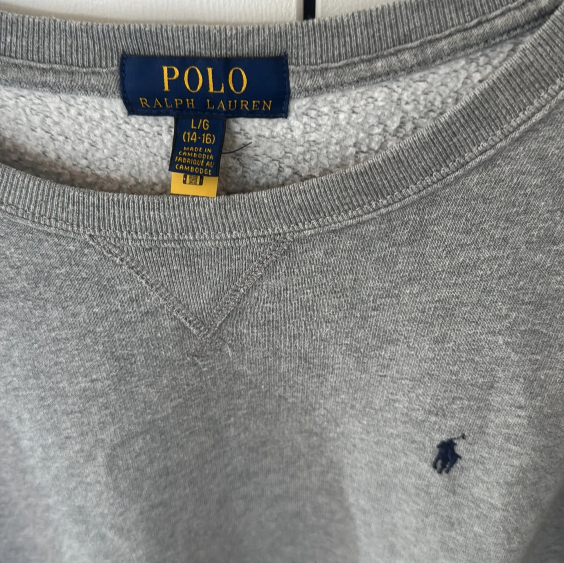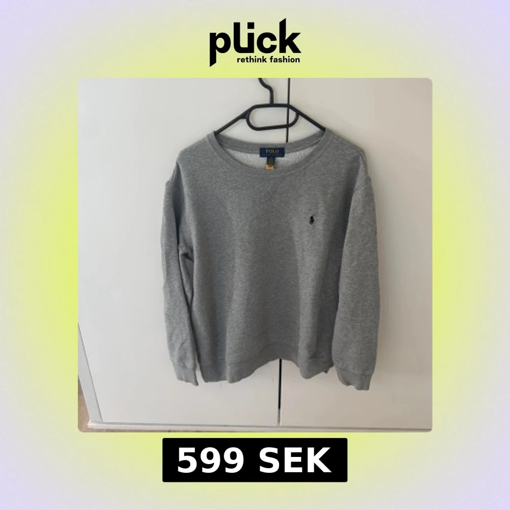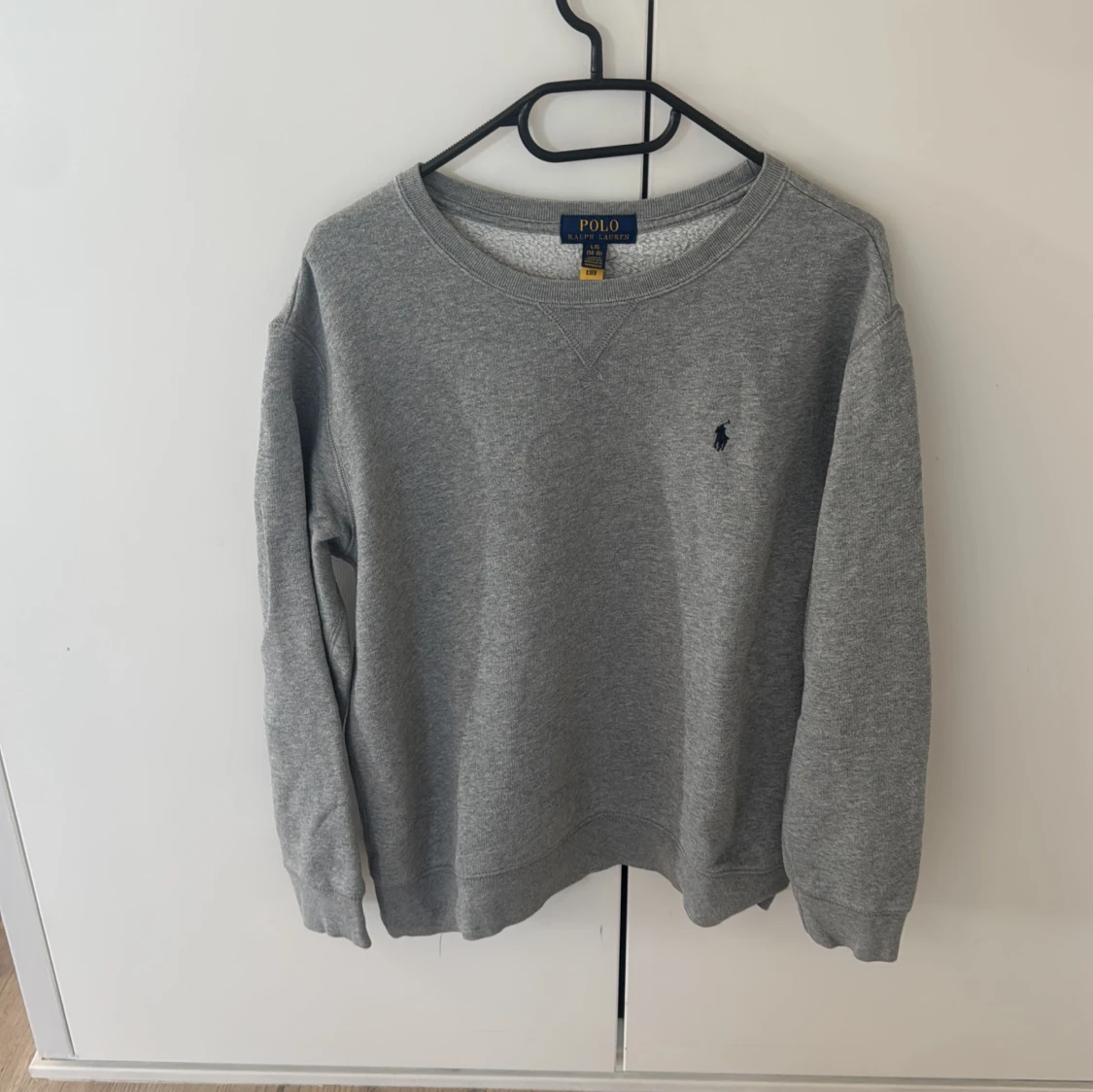 Snygg grå sweatshirt från Polo Ralph Lauren med klassisk rund hals och broderad marinblå logga på bröstet. Tröjan har ribbade muddar vid ärmslut och nederkant, och är tillverkad i mjuk bomullsmix som är perfekt för chill dagar.