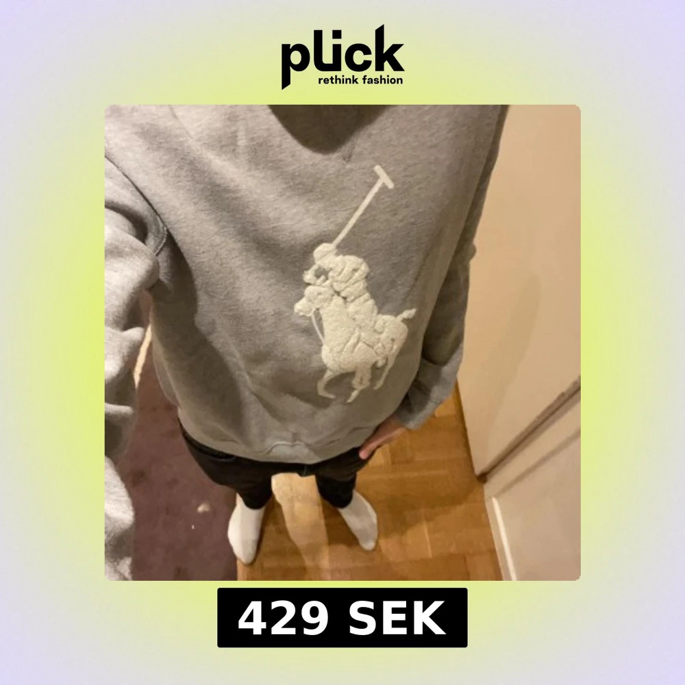 Säljer en grå sweatshirt från Polo Ralph Lauren med det klassiska stora polospelar-motivet broderat framtill. Tröjan har rund halsringning, ribbade muddar och är riktigt skön att bära. Perfekt för dig som gillar stilren och sportig look.