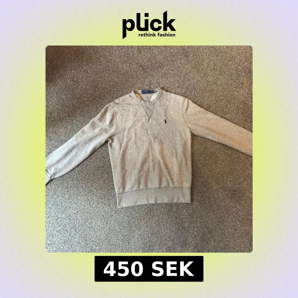 Säljer en stilren grå sweatshirt från Polo Ralph Lauren med klassisk rund halsringning och broderad logga på bröstet. Tröjan har långa ärmar och breda muddar vid ärmslut och nederkant. Perfekt för en chill och snygg look.