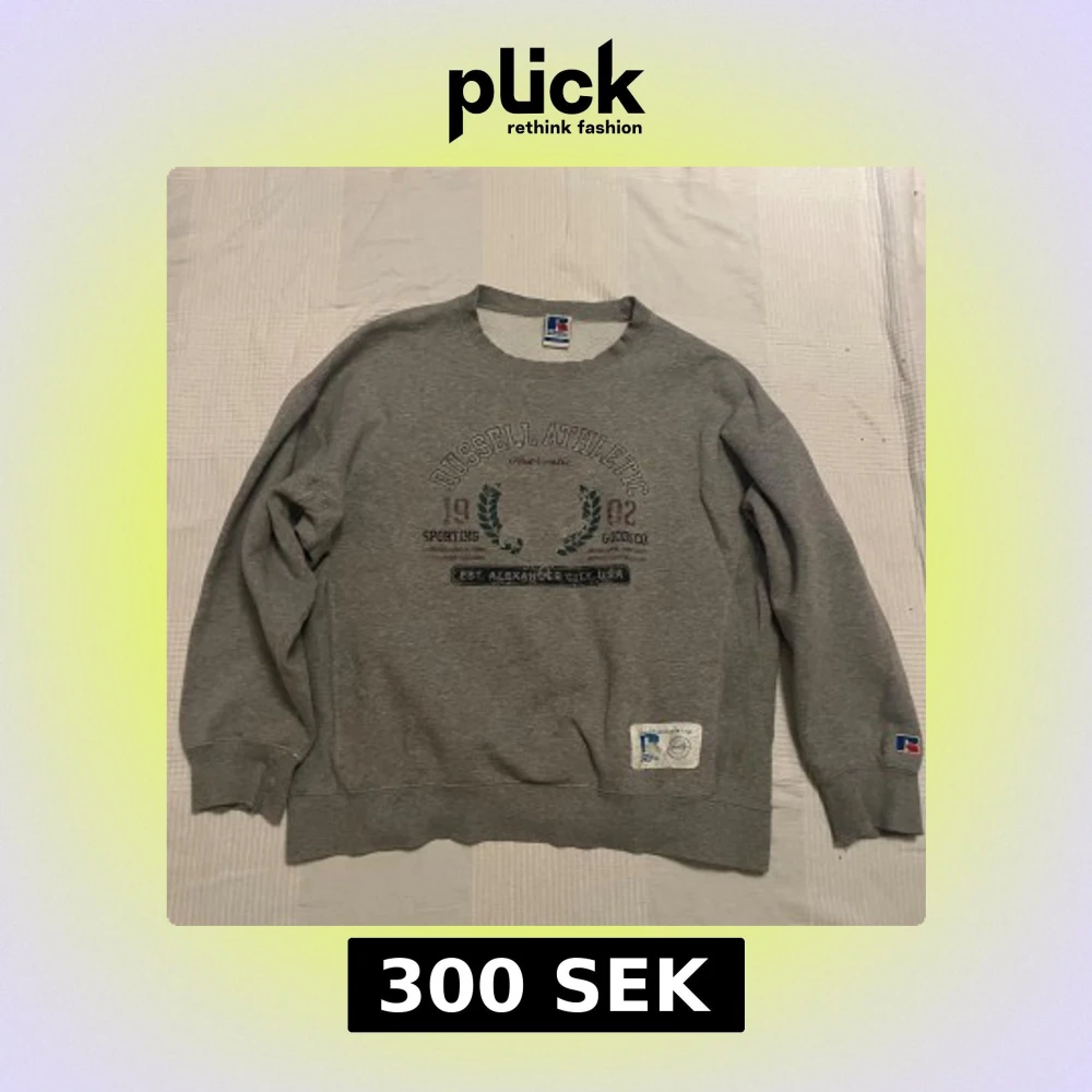 Grå sweatshirt från Russell Athletic med broderad logga och text framtill. Tröjan har rund hals, ribbade muddar och en patch vid nederkanten. Klassisk loose fit och långärmad, perfekt för chill dagar eller sportig stil. Sliten i ärmarna.