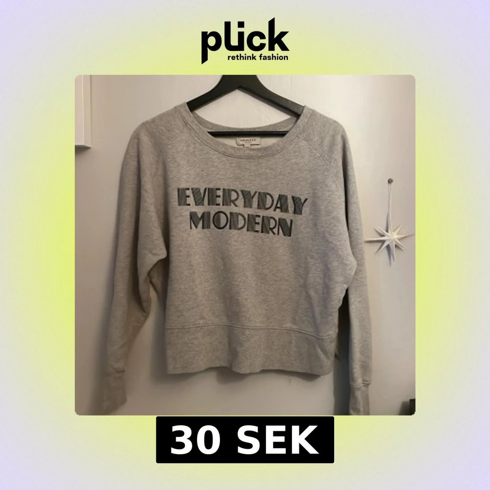 Grå sweatshirt med trycket 'EVERYDAY MODERN' framtill från Selected Femme. Tröjan har rund halsringning och långa ärmar, rätt kort!