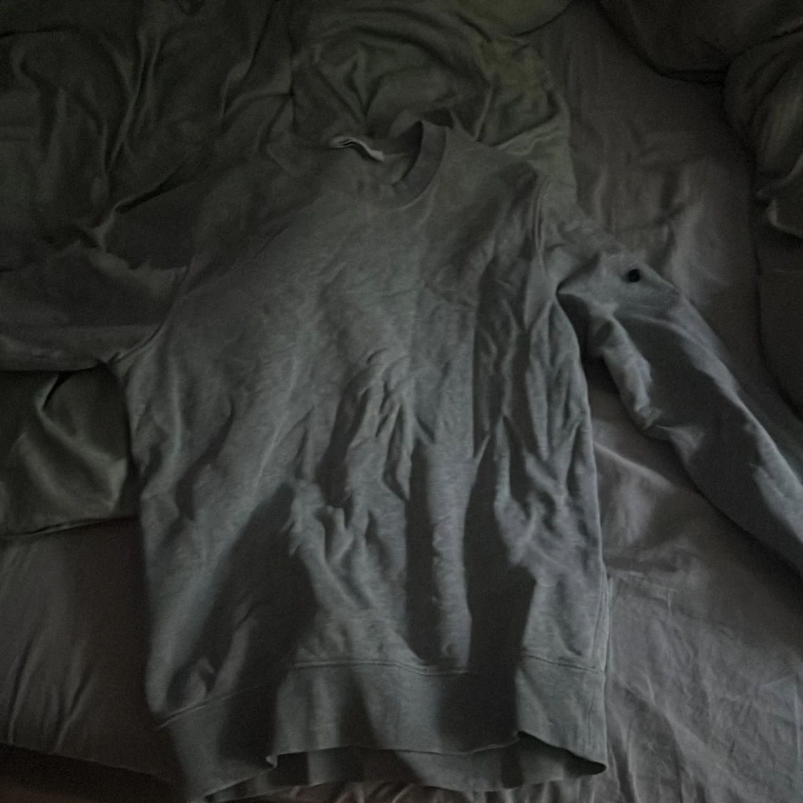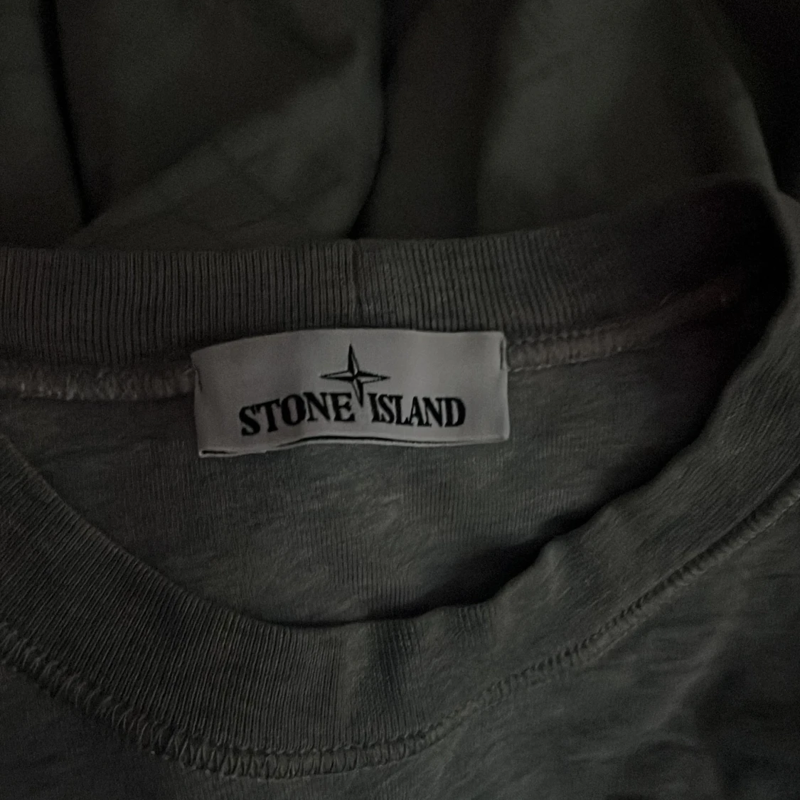 Grå långärmad sweatshirt från Stone Island med klassisk rund halsringning. Tröjan har en enkel och clean design utan tryck, tillverkad i mjuk bomull. Perfekt för dig som gillar streetwear och vill ha en stilren look. Skick 3/10. Finns logga också