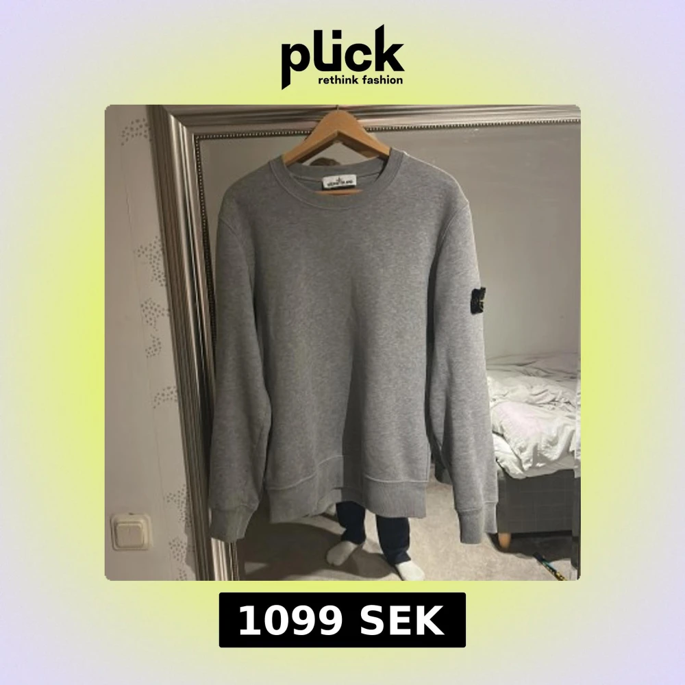 Snygg grå sweatshirt från Stone Island med klassisk rund hals och ribbade muddar. Tröjan har lång ärm och den ikoniska Stone Island-loggan på vänster ärm. Perfekt för dig som gillar stilrena och enkla plagg med streetkänsla.