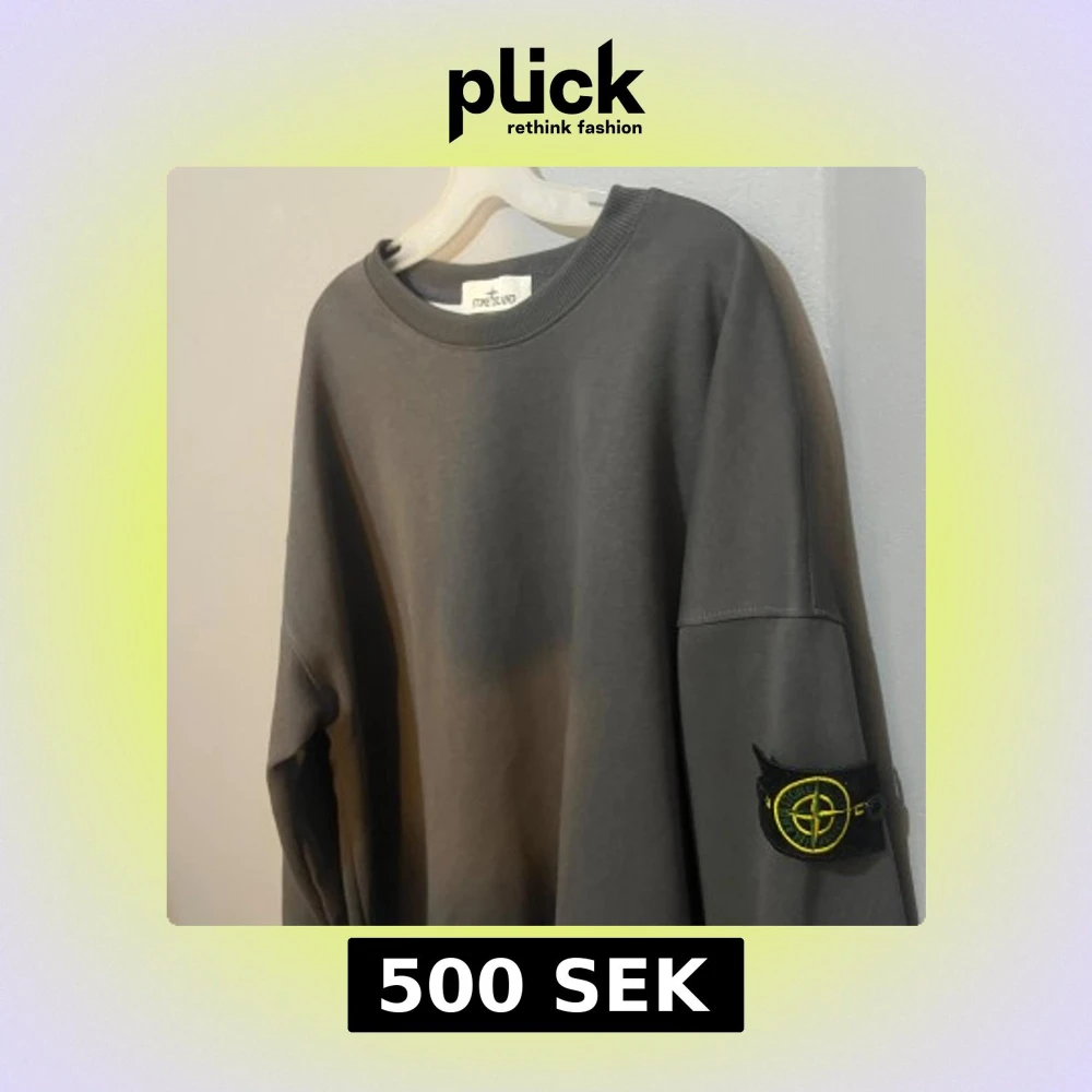 ‼️‼️pris kan diskuteras ‼️‼️Säljer en grå sweatshirt från Stone Island med klassisk rund hals och ribbade muddar. tröjan har den ikoniska svarta patchen med gul logga på vänster ärm. Oversized passform och tillverkad i mjuk bomull för maximal komfort.