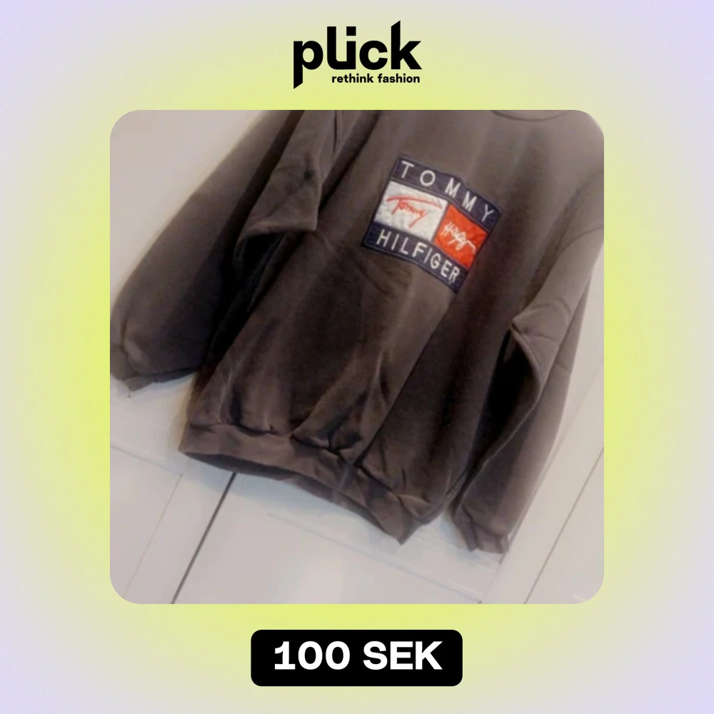 Säljer en snygg grå sweatshirt från Tommy Hilfiger med deras ikoniska logga på bröstet. Perfekt för en casual look och superbekväm att ha på sig. Passar bra till både jeans och joggers. Perfekt för höst och vår! Strl M