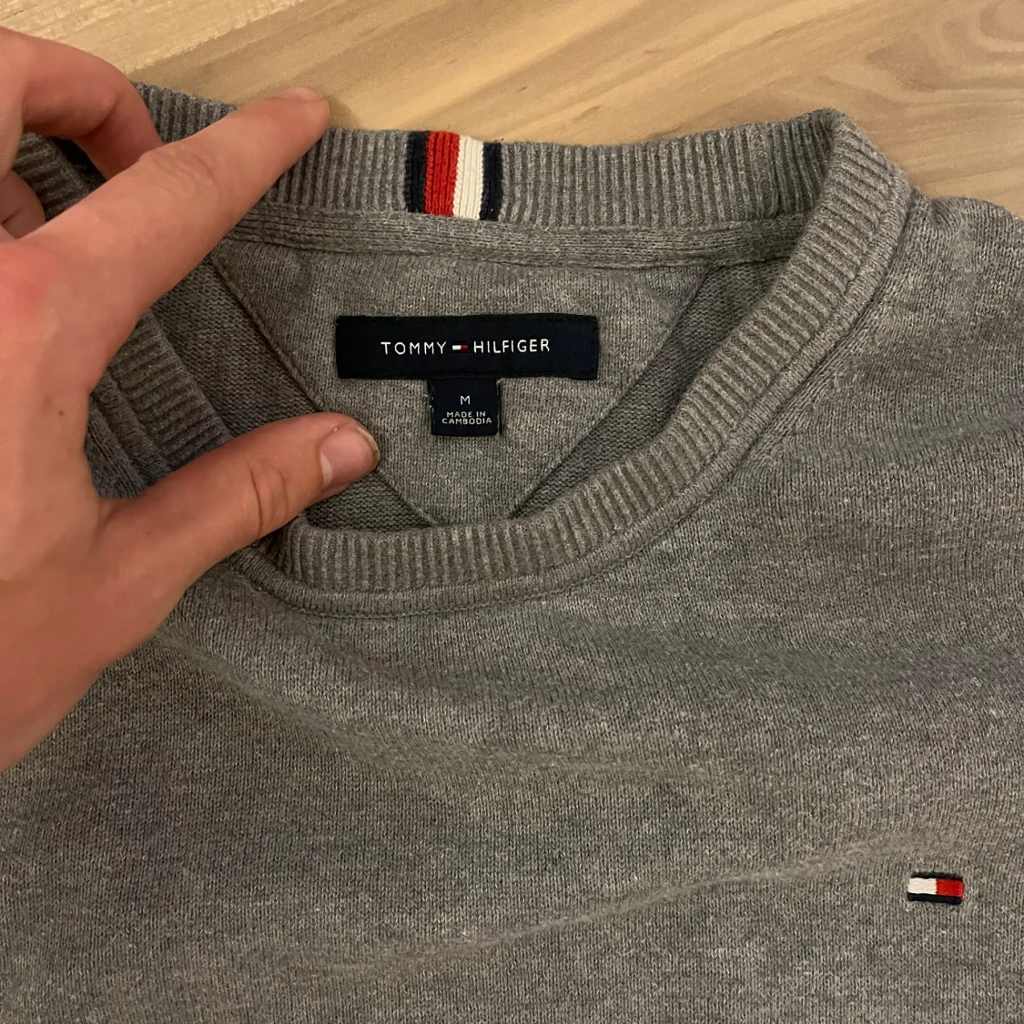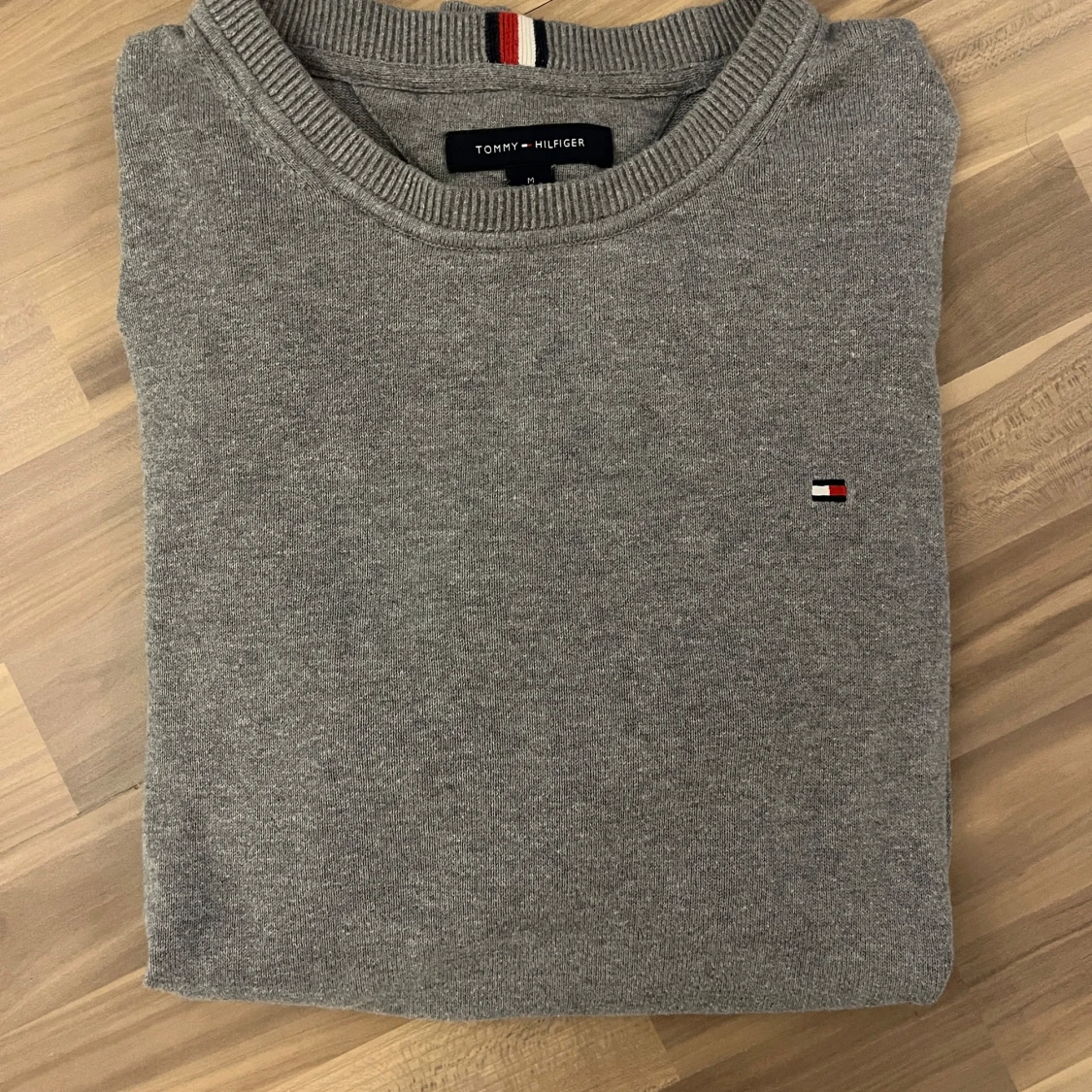 Säljer en klassisk grå sweatshirt från Tommy Hilfiger med rund halsringning och diskret logga på bröstet. Tröjan har långa ärmar och ribbade muddar vid ärmslut och nederkant. Perfekt för en stilren och enkel look. Gjord i 100% bomull!