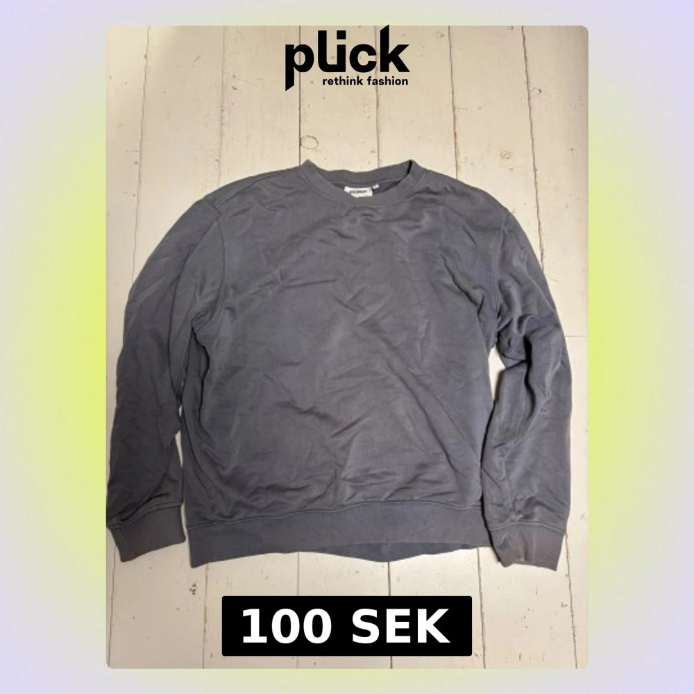 En enkel och stilren grå sweatshirt från Weekday med rund hals och ribbade muddar vid ärmslut och nederkant. Tröjan har en loose passform och är tillverkad i mjuk bomull, perfekt för chill dagar. Passar dig som gillar minimalistisk stil. Den är lite solblekt runt kragen och i ärmarna.