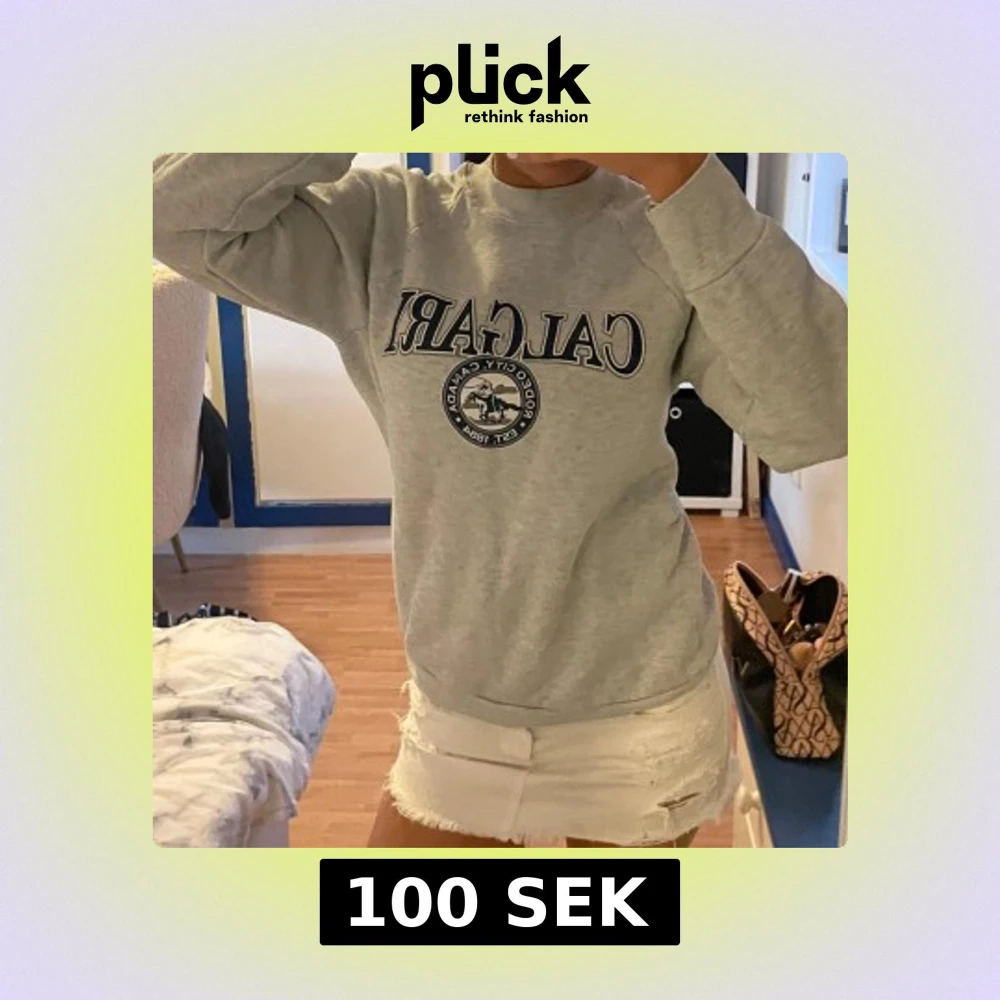 Säljer en grå sweatshirt med ett stort Calgary-tryck i marinblått och vitt på framsidan. Söt och mysig !! Bra skick 💕