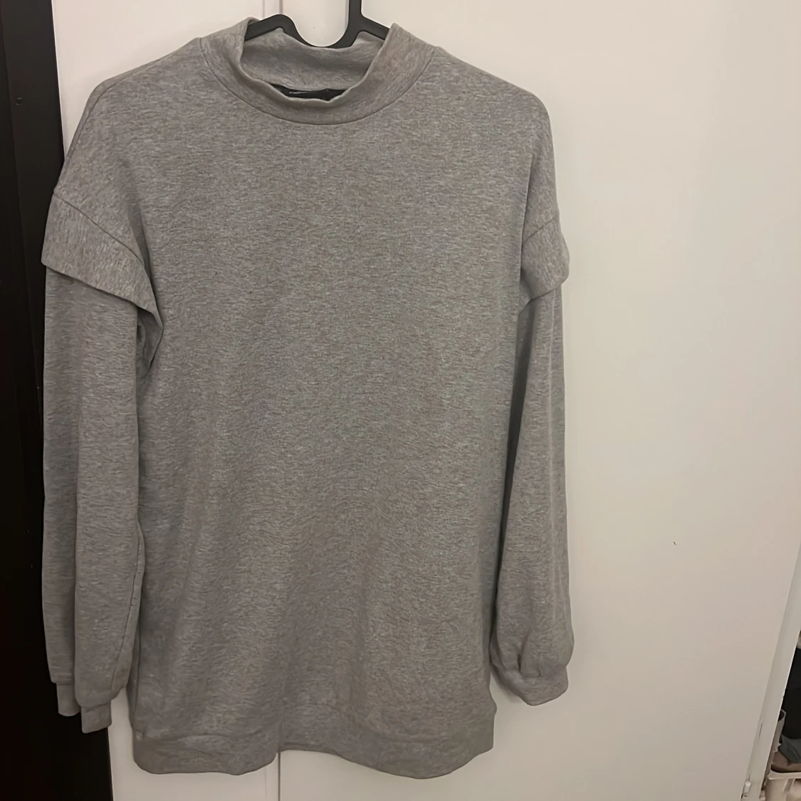 En enkel och stilren grå sweatshirt med hög krage och långa ärmar. Tröjan har en loose passform och är tillverkad i mjuk bomullsmix, perfekt för chill dagar. Snygga detaljer vid axlarna ger en modern touch.