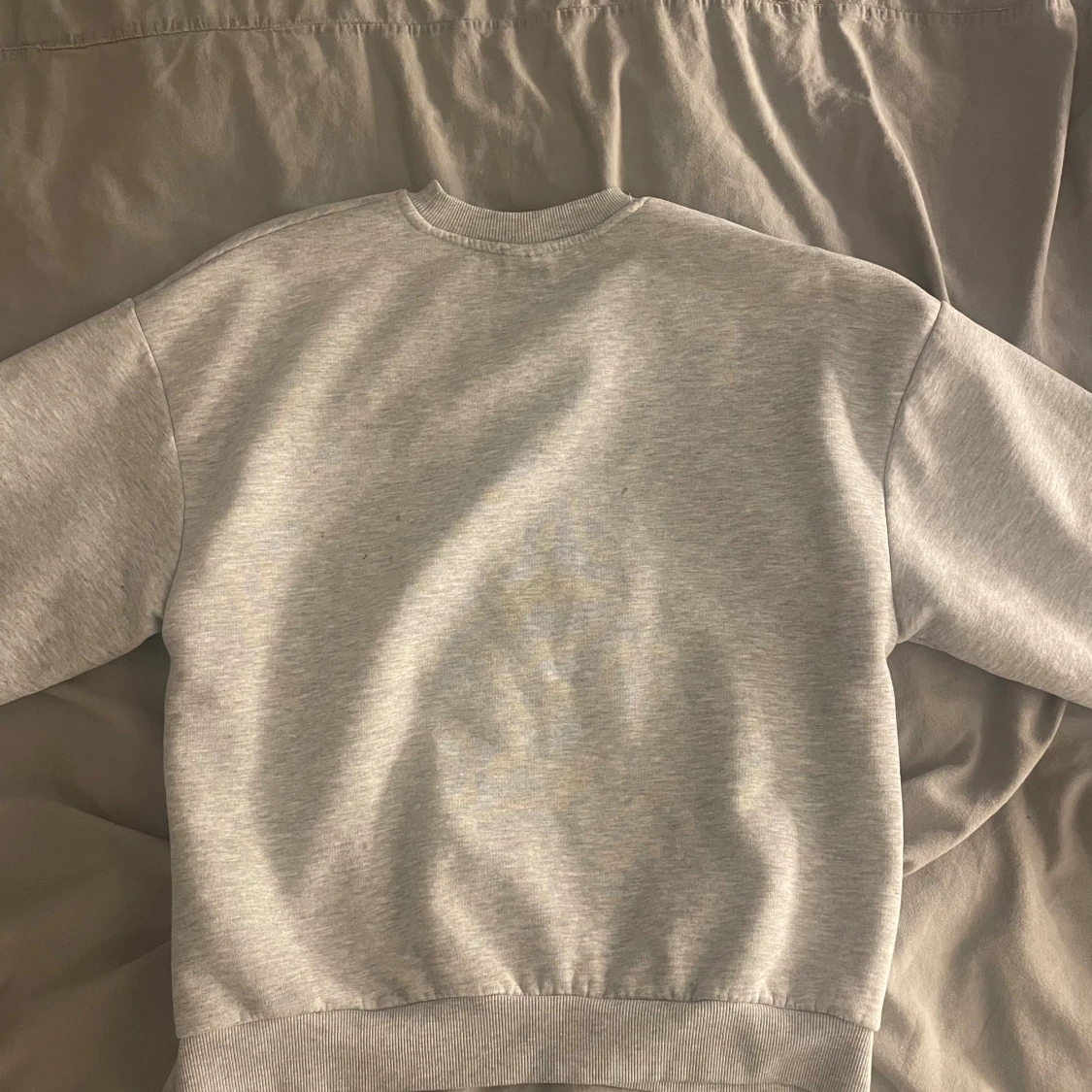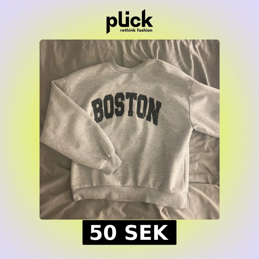 Säljer en grå sweatshirt med svart Boston-tryck på bröstet. Använd få gånger❣️