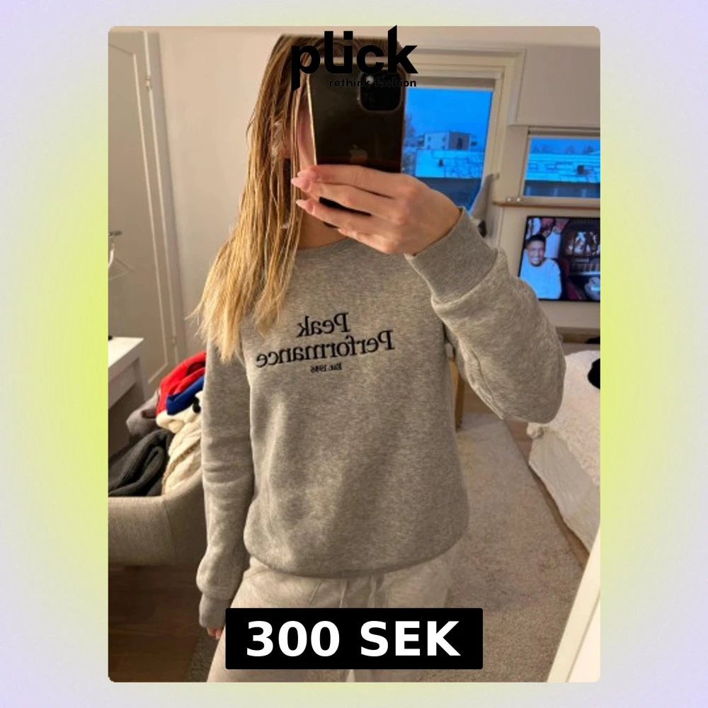 Säljer en grå sweatshirt från Peak Performance i storlek S. Tröjan har svart broderad logga och text på bröstet, rund halsringning och ribbade muddar vid ärmslut och nederkant. Endast använd 1 gång så den är som ny💗Storlek S.