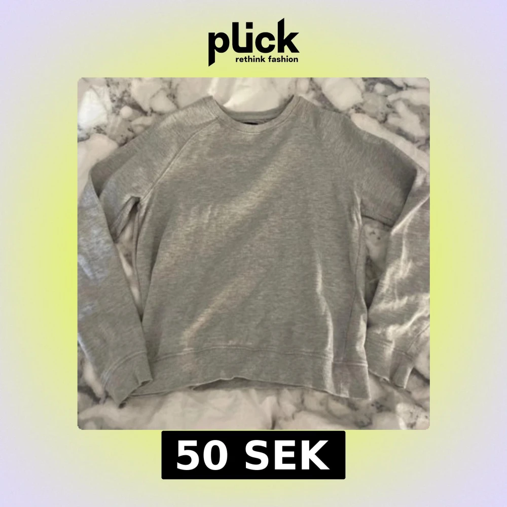 Säljer en enkel och stilren grå sweatshirt med rund hals. Perfekt för en avslappnad look. Tröjan har långa ärmar och är gjord i ett mjukt material för extra komfort.