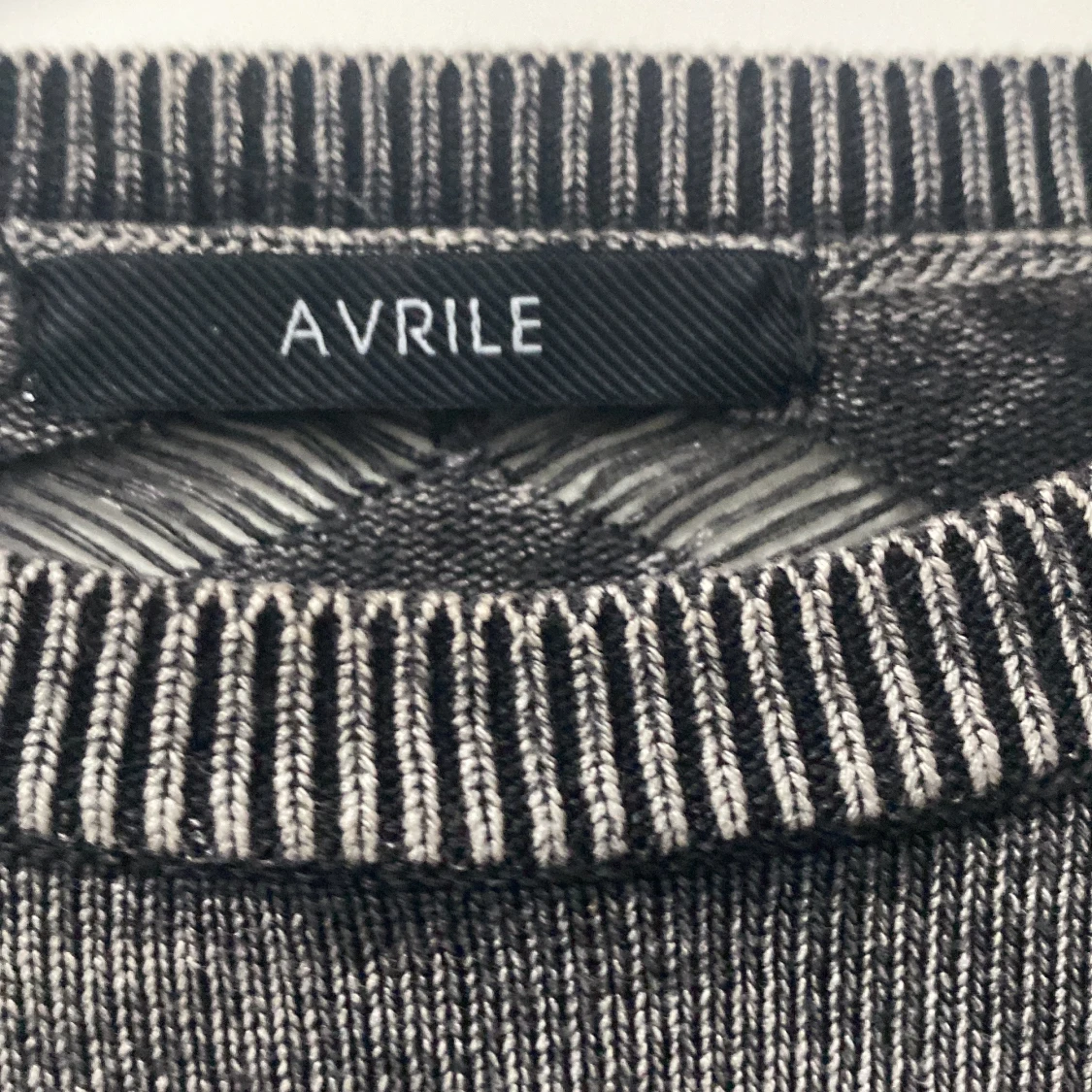Säljer en snygg grå tröja från Avrile med ett unikt mönster. Tröjan är långärmad och har en cool, ribbad kant vid halsen. Perfekt för höst och vinter!