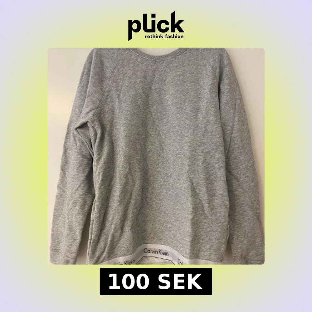 Säljer en stilren grå tröja från Calvin Klein. Tröjan har långa ärmar och en elastisk kant med Calvin Klein-logga längst ner.