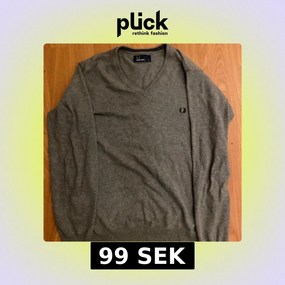 Säljer en stilren grå tröja från Fred Perry med v-ringning och broderad logga på bröstet. Perfekt för en avslappnad men snygg look. Tröjan har långa ärmar och ribbade kanter. Storlek S