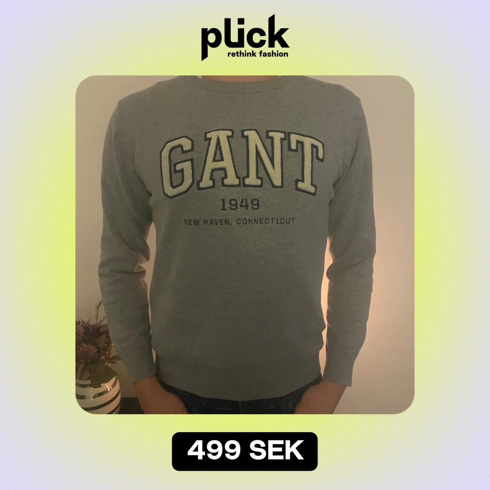 Säljer en snygg grå tröja från GANT med tryck 'GANT 1949 New Haven, Connecticut' på framsidan. Tröjan är i bra skick och har långa ärmar med ribbade muddar. Perfekt för nästan allt. Tveka inte på att höra av er vid frågor och funderingar 🌟