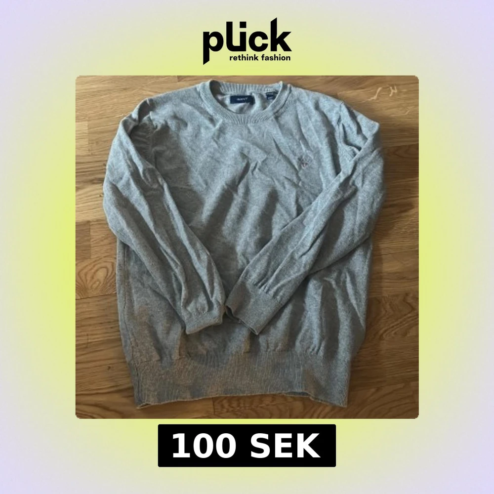 Säljer en klassisk grå tröja från GANT med rund halsringning och diskret broderad logga på bröstet. Tröjan har långa ärmar och ribbade muddar vid ärmslut och nederkant. Perfekt för en stilren vardagslook.