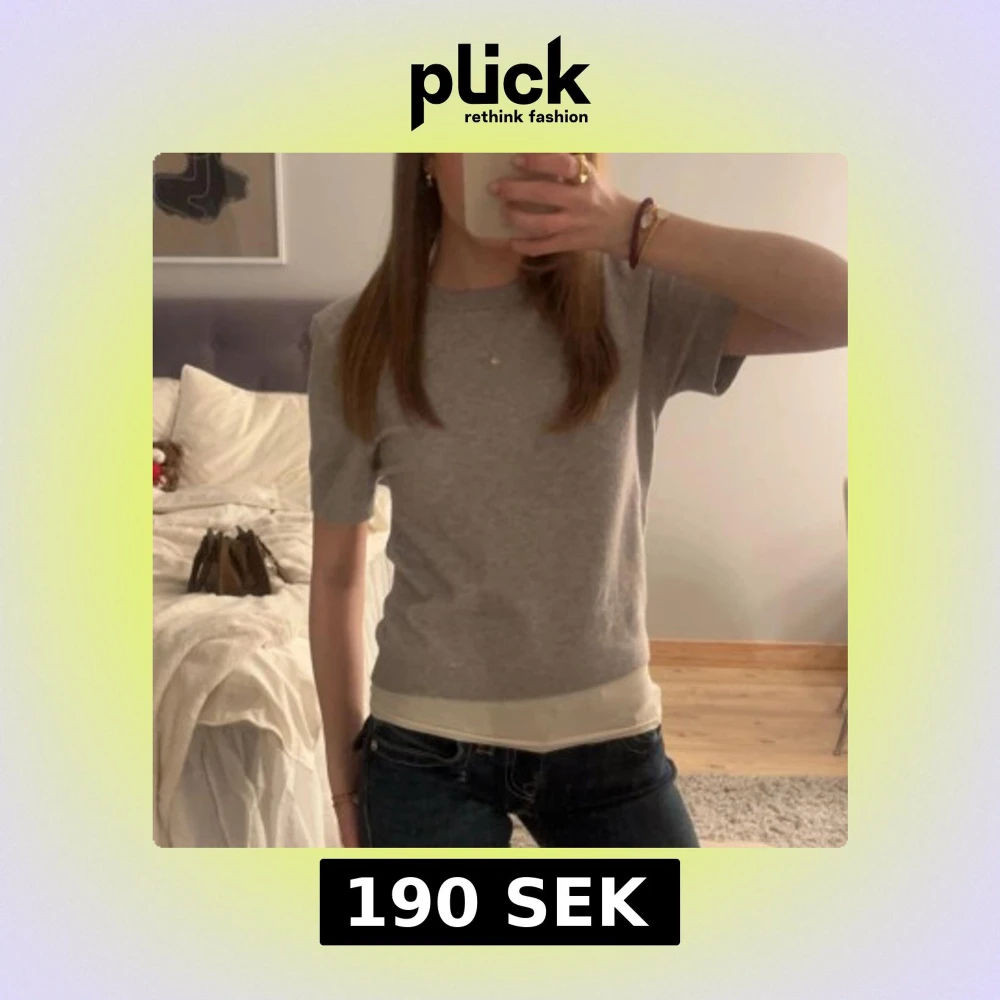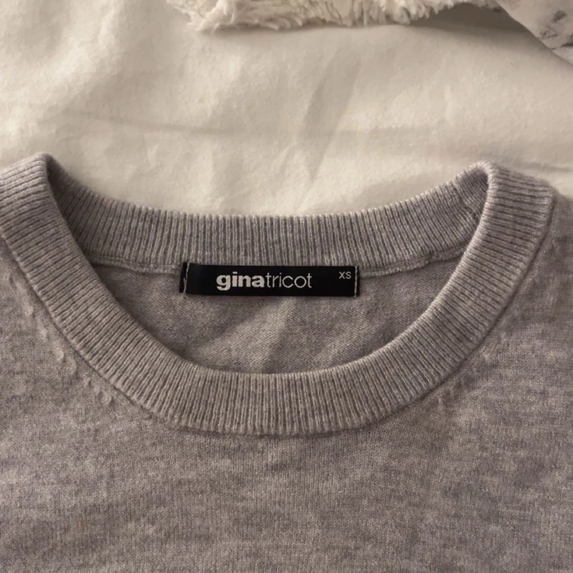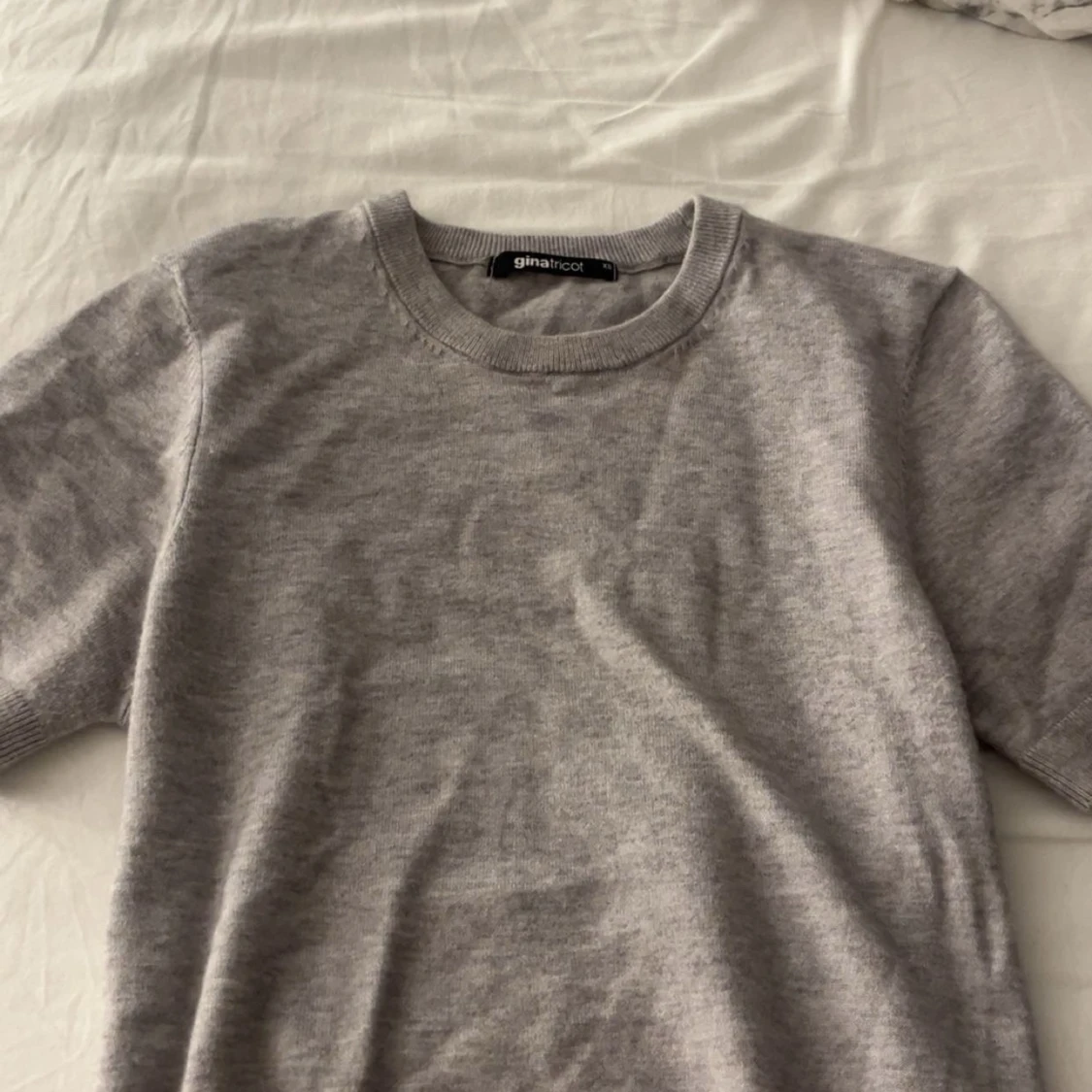 Säljer en stilren grå tröja från Gina Tricot i storlek XS. Tröjan har korta ärmar och en rund halsringning, perfekt för en avslappnad look. Passar bra till jeans eller kjol för en enkel och snygg outfit.