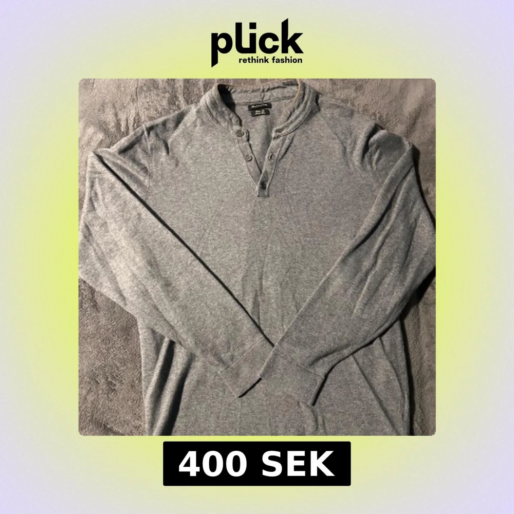Säljer en stilren grå tröja från Massimo Dutti med knappar vid halsen. Tröjan har långa ärmar och en mjuk krage med en fin detalj i form av en kontrasterande kant. Perfekt för en avslappnad men ändå elegant look.